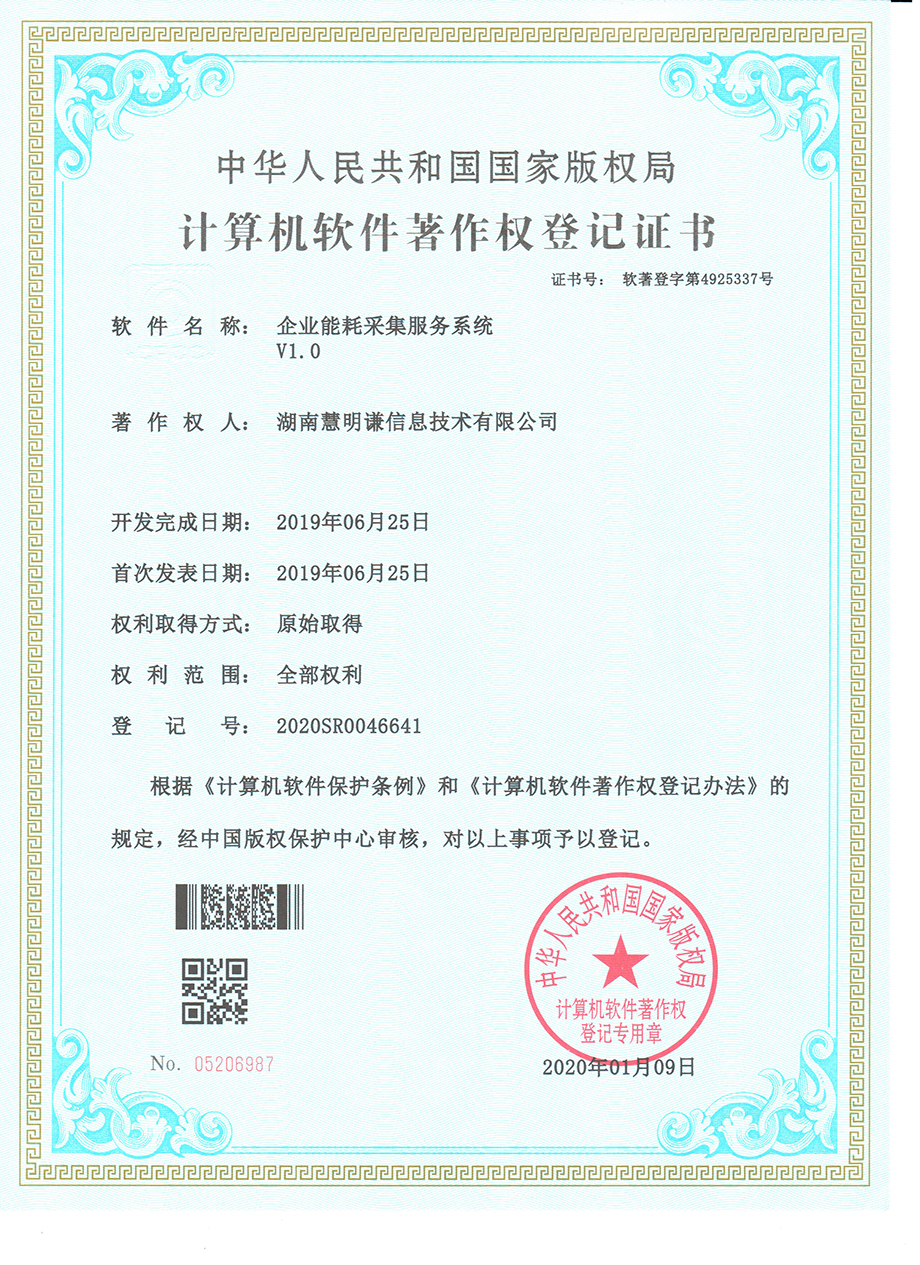 企業(yè)能耗采集服務系統(tǒng)V1.0登記證書
