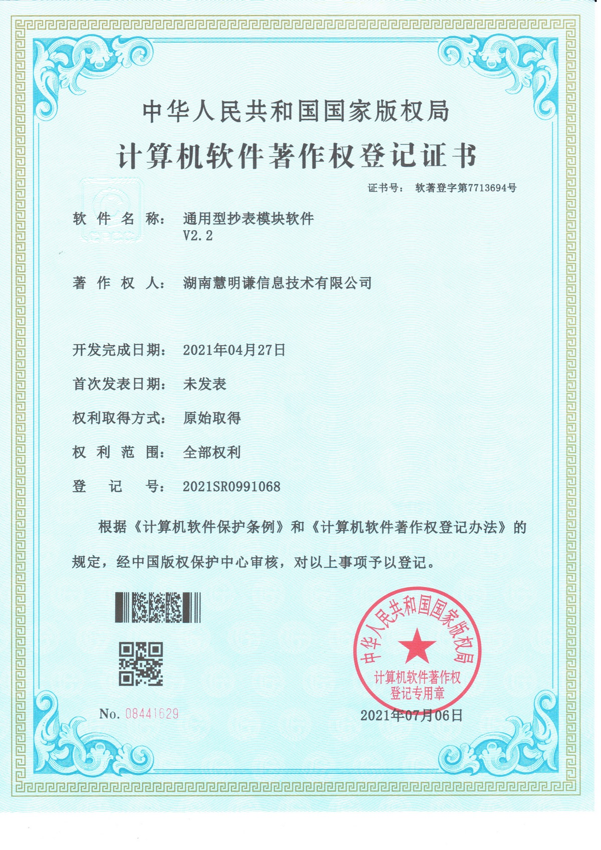 能耗綜合管理系統(tǒng)V3.0登記證書