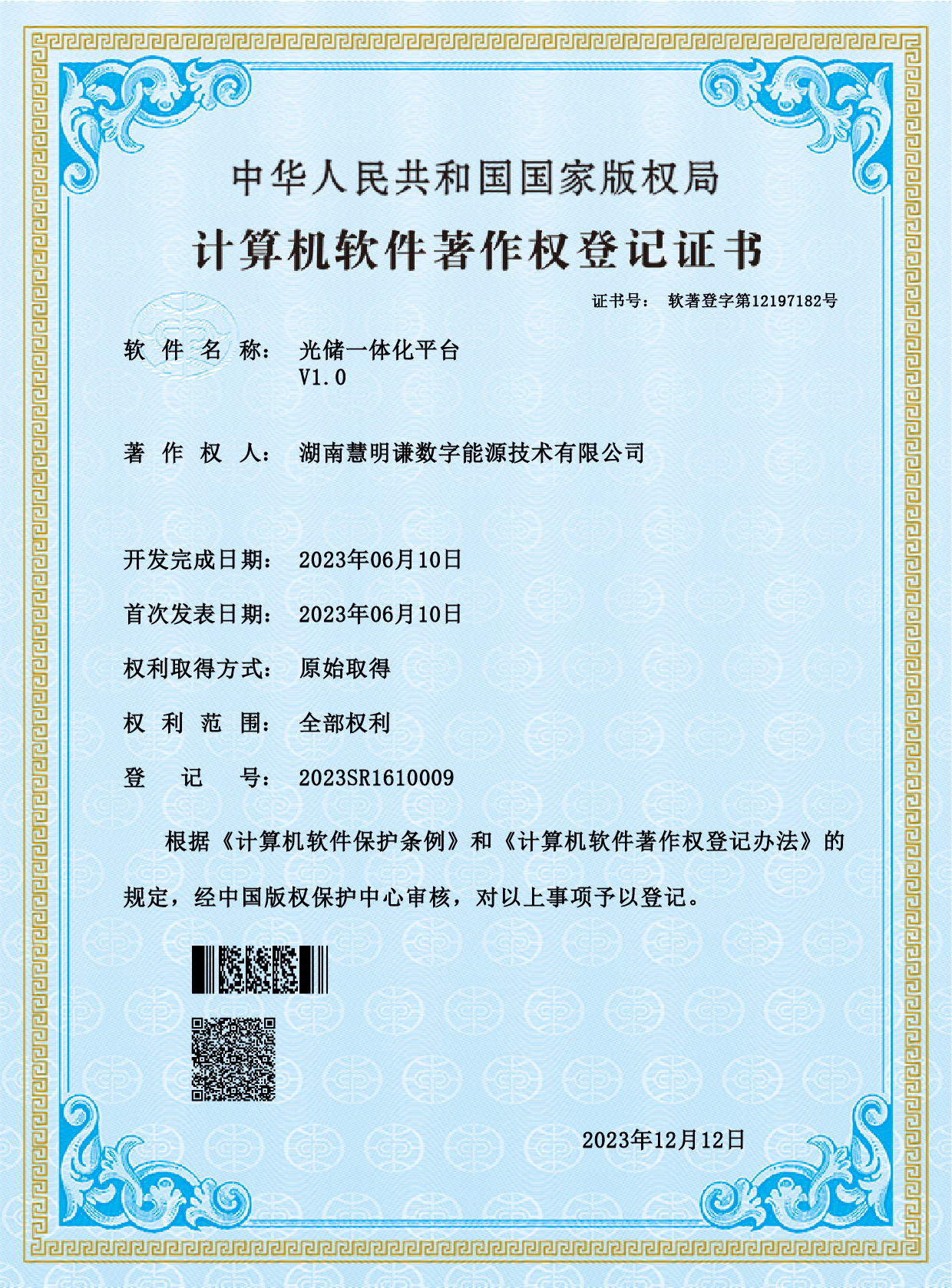 光儲一體化V1.0軟件著作權登記證書