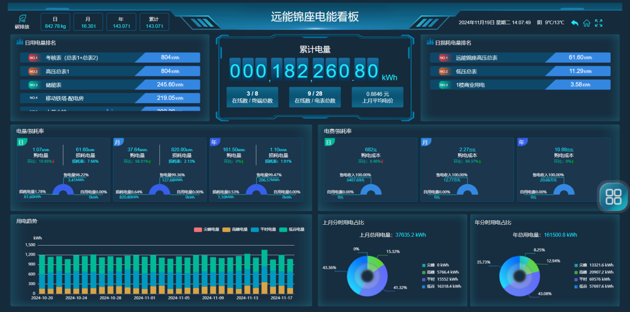 沒(méi)有對(duì)項(xiàng)目每天運(yùn)行數(shù)據(jù)進(jìn)行監(jiān)測(cè)和展示,供電量(高壓總表)、售電量(代收代繳電量)、繳費(fèi)數(shù)據(jù)、欠費(fèi)數(shù)據(jù)、負(fù)荷數(shù)據(jù)、損耗數(shù)據(jù)等都沒(méi)有匯總統(tǒng)計(jì)、沒(méi)有詳細(xì)的報(bào)表,無(wú)法對(duì)整體用電情況做全盤掌握。