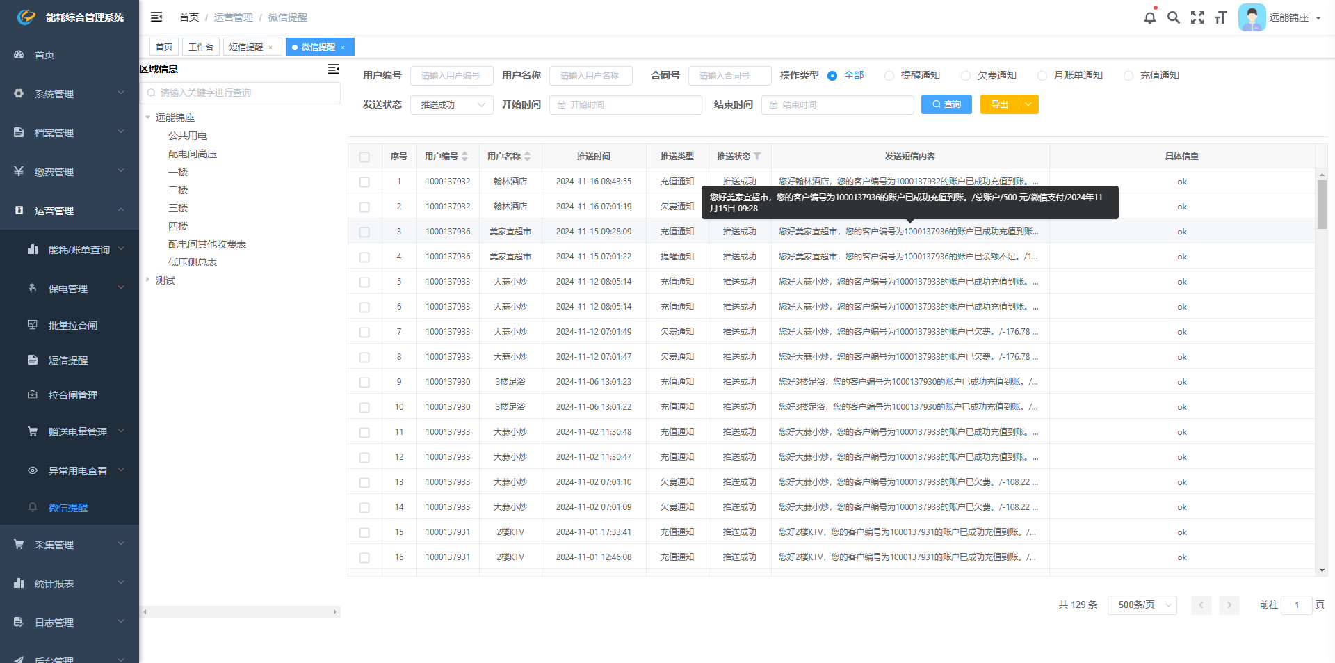 電表賬戶余額不足、欠費(fèi)跳閘預(yù)警、月賬單等通知消息將通過(guò)系統(tǒng)自動(dòng)推送給用戶。