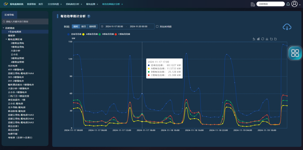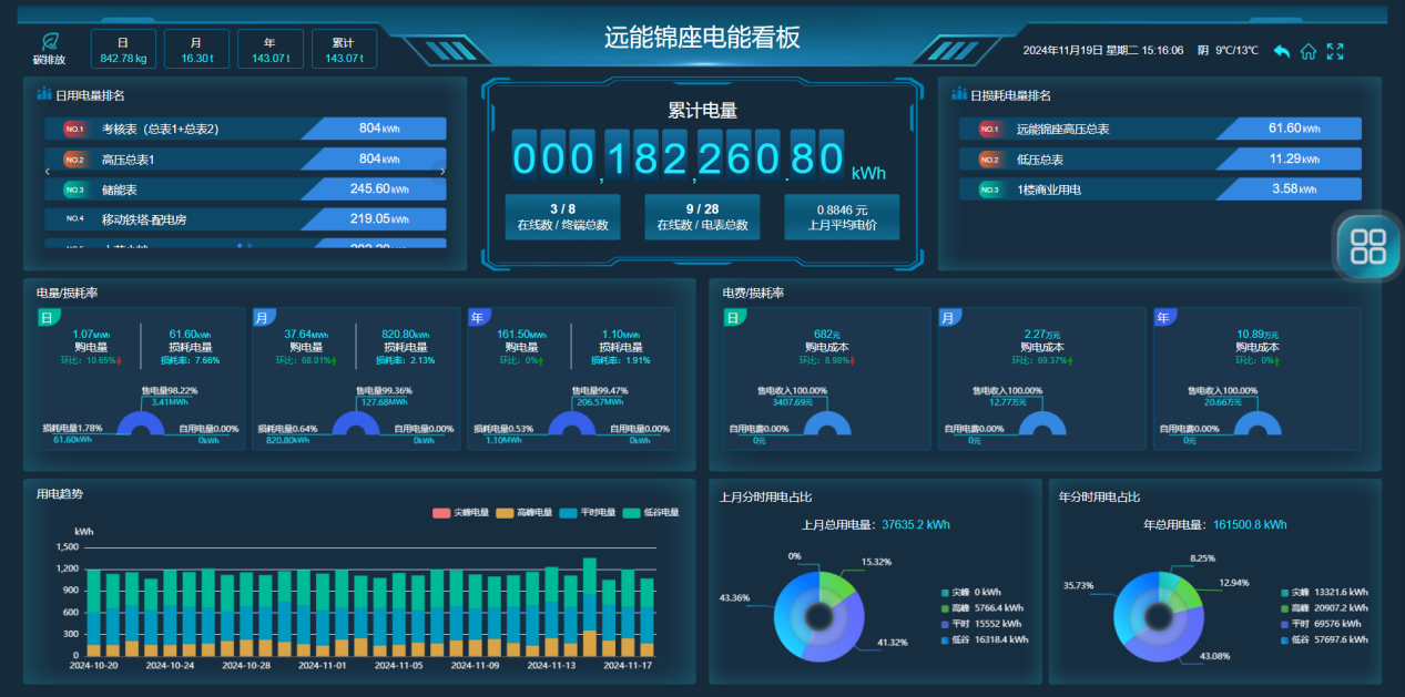 項(xiàng)目于2022和2024年、分兩期按上述方案進(jìn)行了改造,依托數(shù)字能源管理平臺(tái)(四個(gè)子系統(tǒng):預(yù)付費(fèi)管理系統(tǒng)、光儲(chǔ)一體系統(tǒng)、能耗監(jiān)測(cè)系統(tǒng)、配電監(jiān)測(cè)系統(tǒng)),實(shí)現(xiàn)各級(jí)計(jì)量電表準(zhǔn)確計(jì)量、自動(dòng)抄表、智能預(yù)付費(fèi)管理、用戶手機(jī)繳費(fèi)、自動(dòng)損耗計(jì)算與分析、智能配電監(jiān)測(cè)等功能,完善“量?jī)r(jià)費(fèi)損”精益化管理體系,把項(xiàng)目建設(shè)為“源網(wǎng)荷儲(chǔ)”智能一體化數(shù)字能源樓宇。