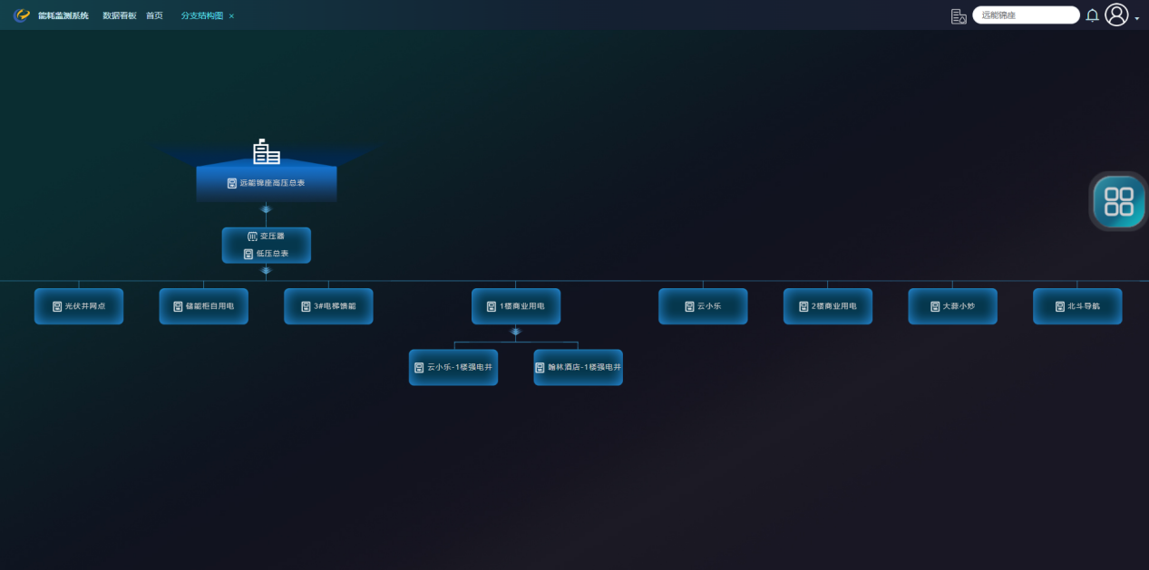 2) 構(gòu)建能源拓?fù)鋱D,實(shí)現(xiàn)能源結(jié)構(gòu)電子化與可視化,監(jiān)測(cè)能源流向,實(shí)時(shí)監(jiān)測(cè)各級(jí)能耗情況;