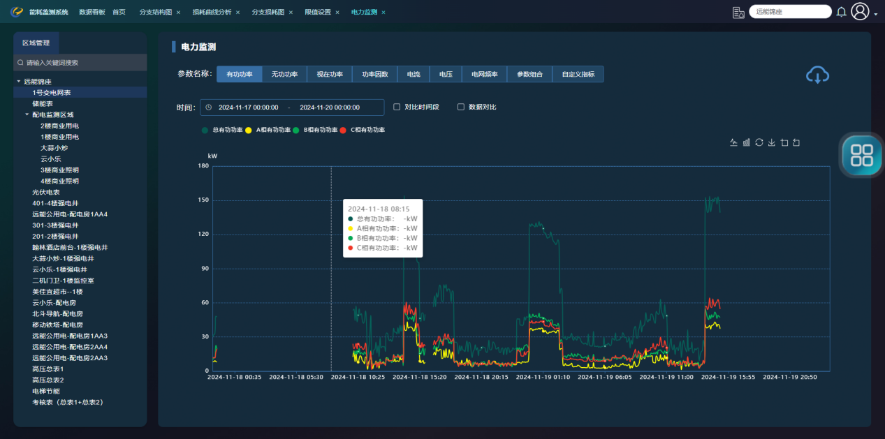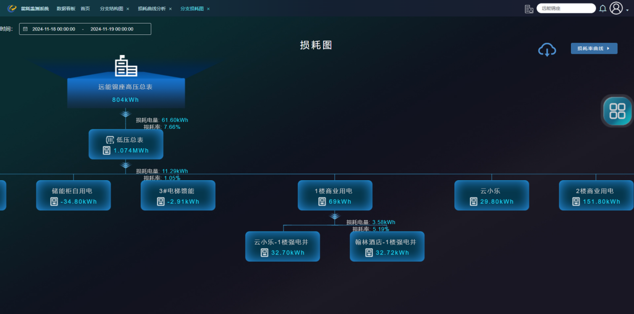 實(shí)現(xiàn)四級(jí)計(jì)量的能耗、損耗、供電質(zhì)量等能耗相關(guān)數(shù)據(jù)的監(jiān)測(cè)與分析,系統(tǒng)每日自動(dòng)計(jì)算統(tǒng)計(jì)變損及線損,做到損耗的精確分析。