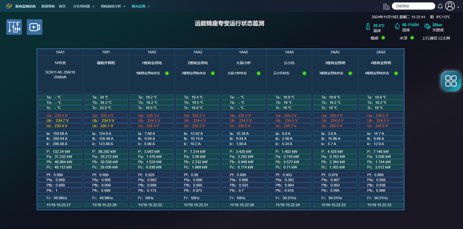 1) 變壓器運(yùn)行工況實(shí)時(shí)監(jiān)測(cè),實(shí)時(shí)檢查負(fù)荷、電壓、頻率等工頻參數(shù),保證配電系統(tǒng)安全穩(wěn)定的運(yùn)行;