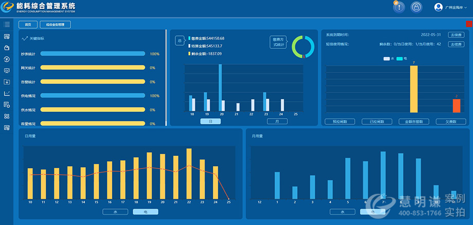 所采用的抄表系統(tǒng)為慧明謙自主研發(fā)的預(yù)付費能耗抄表管理系統(tǒng),它具有遠(yuǎn)程抄表、異常告警、超功率監(jiān)控、控制開合閘以及通過線上或者手機(jī)繳費等功能。