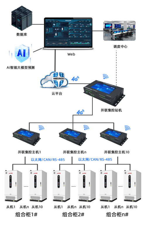 4、儲(chǔ)能柜:現(xiàn)場(chǎng)設(shè)備通訊協(xié)議快速接入,系統(tǒng)高效策略靈活定制,遠(yuǎn)程運(yùn)維,支持多級(jí)架構(gòu)分布式級(jí)聯(lián),靈活組建大容量能源管理系統(tǒng)。