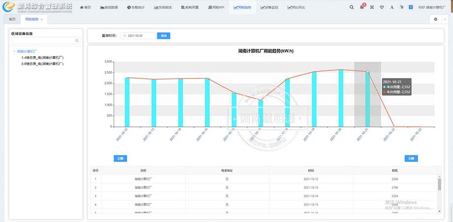 3、用電趨勢(shì):企業(yè)能耗監(jiān)測(cè)管理系統(tǒng)提供到基準(zhǔn)時(shí)間10天和用能趨勢(shì)圖表,幫助企業(yè)分析能耗用量特點(diǎn),以便采取節(jié)能策略和措施。