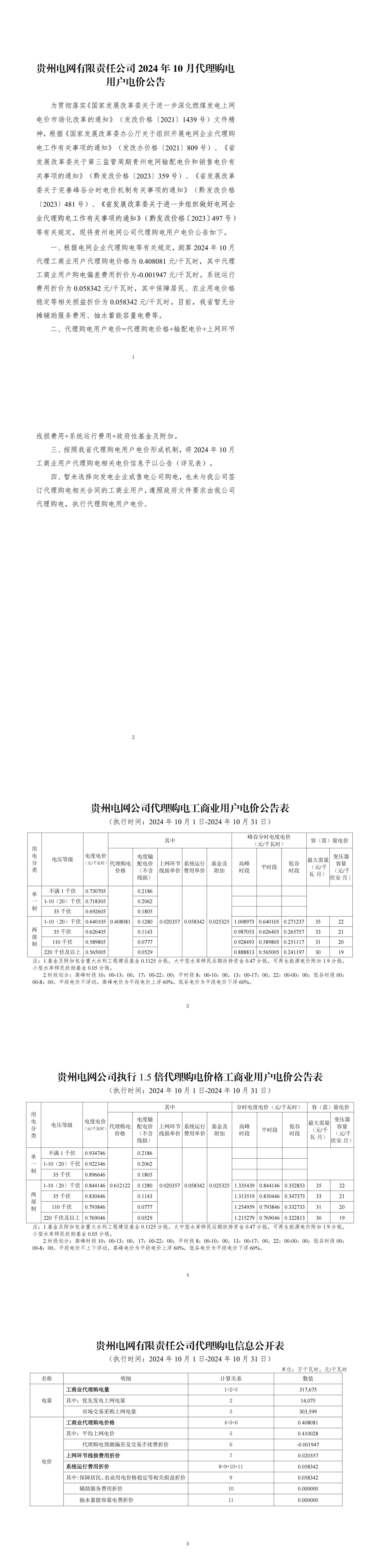 貴州省10月份代理購(gòu)電工商業(yè)用戶電價(jià)表