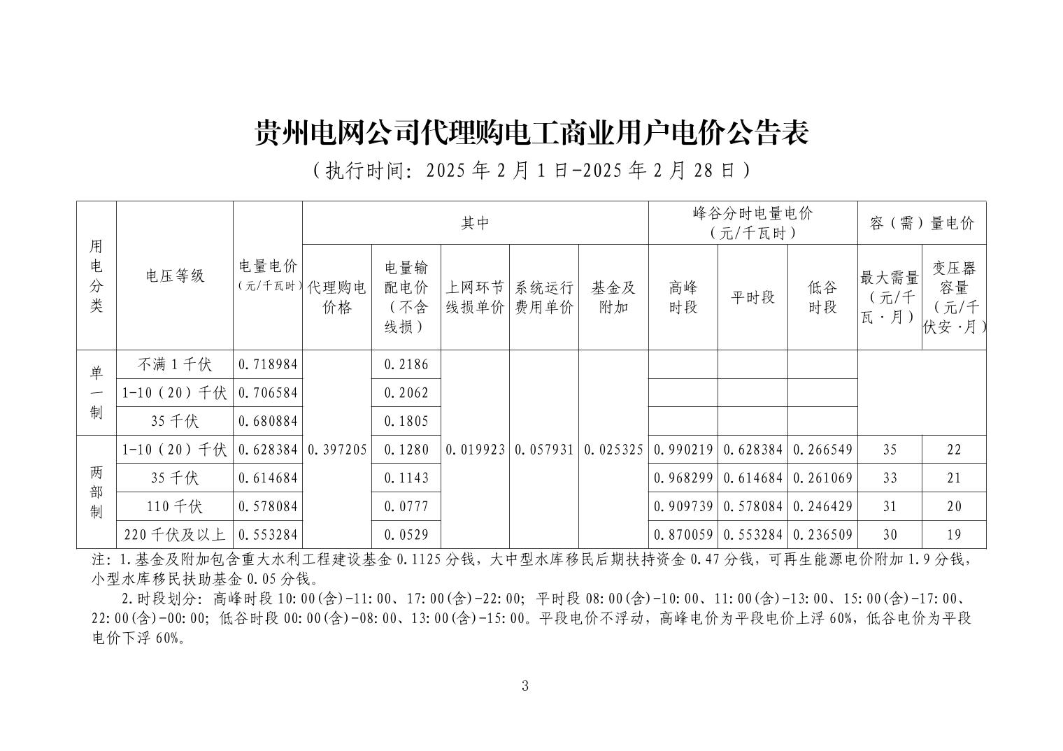 貴州省2月份代理購電工商業(yè)用戶電價(jià)表