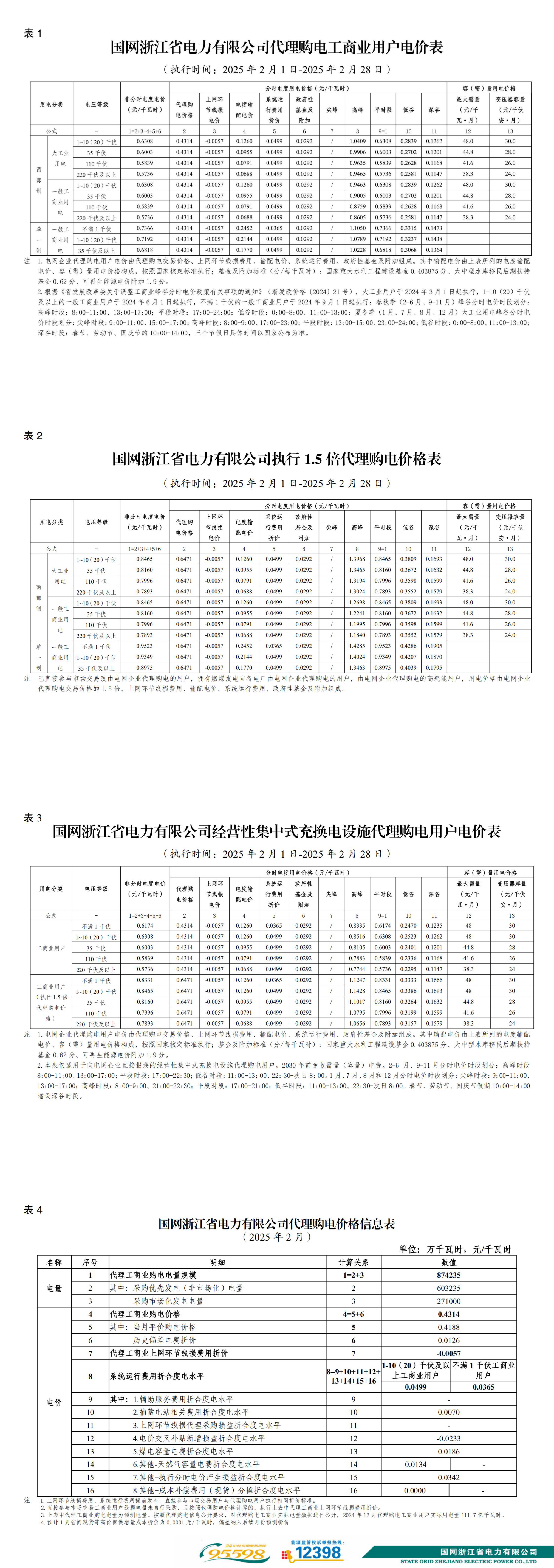 浙江省2月份代理購電工商業(yè)用戶電價(jià)表