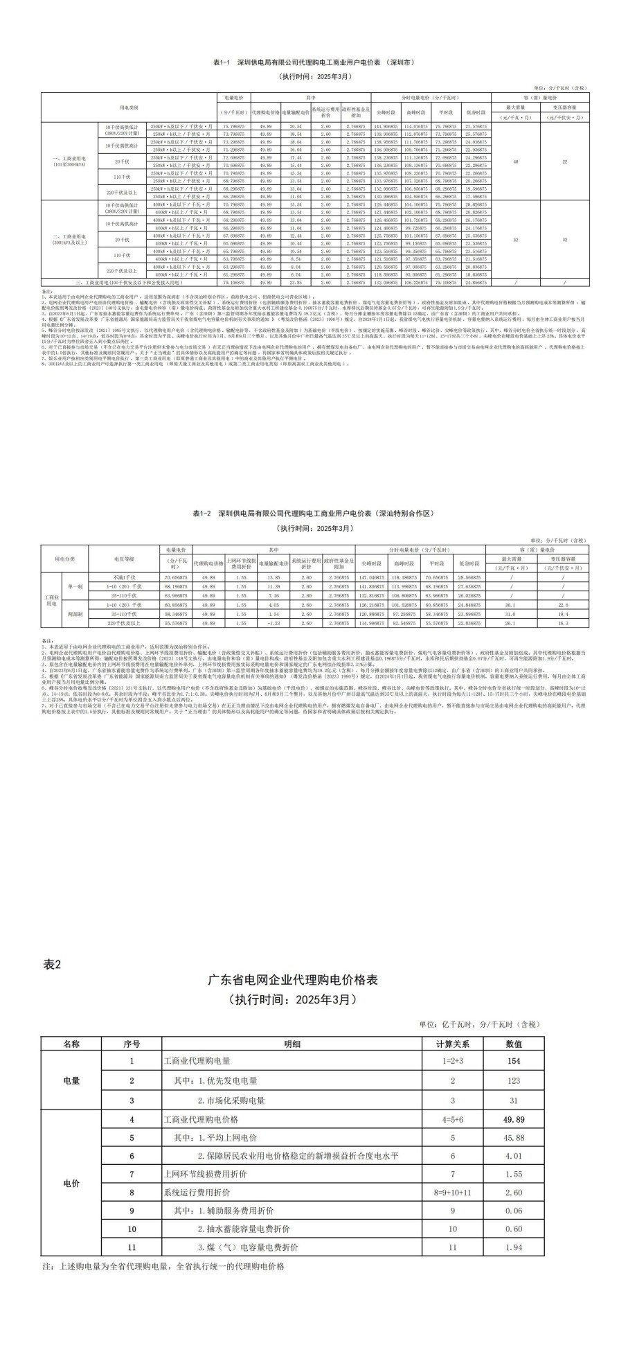 廣東省3月份代理購電工商業(yè)用戶電價表