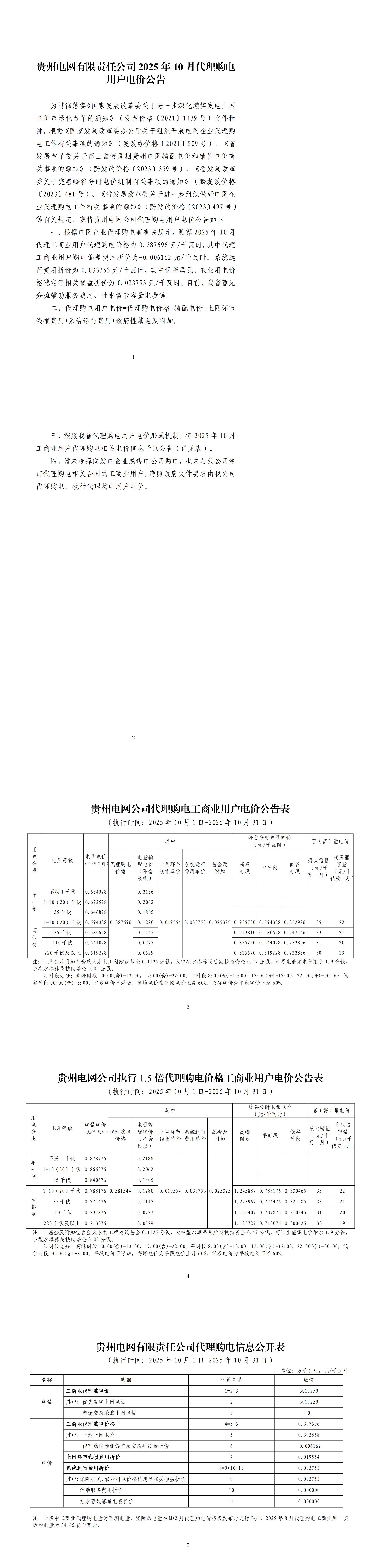 貴州省10月份代理購電工商業(yè)用戶電價(jià)表