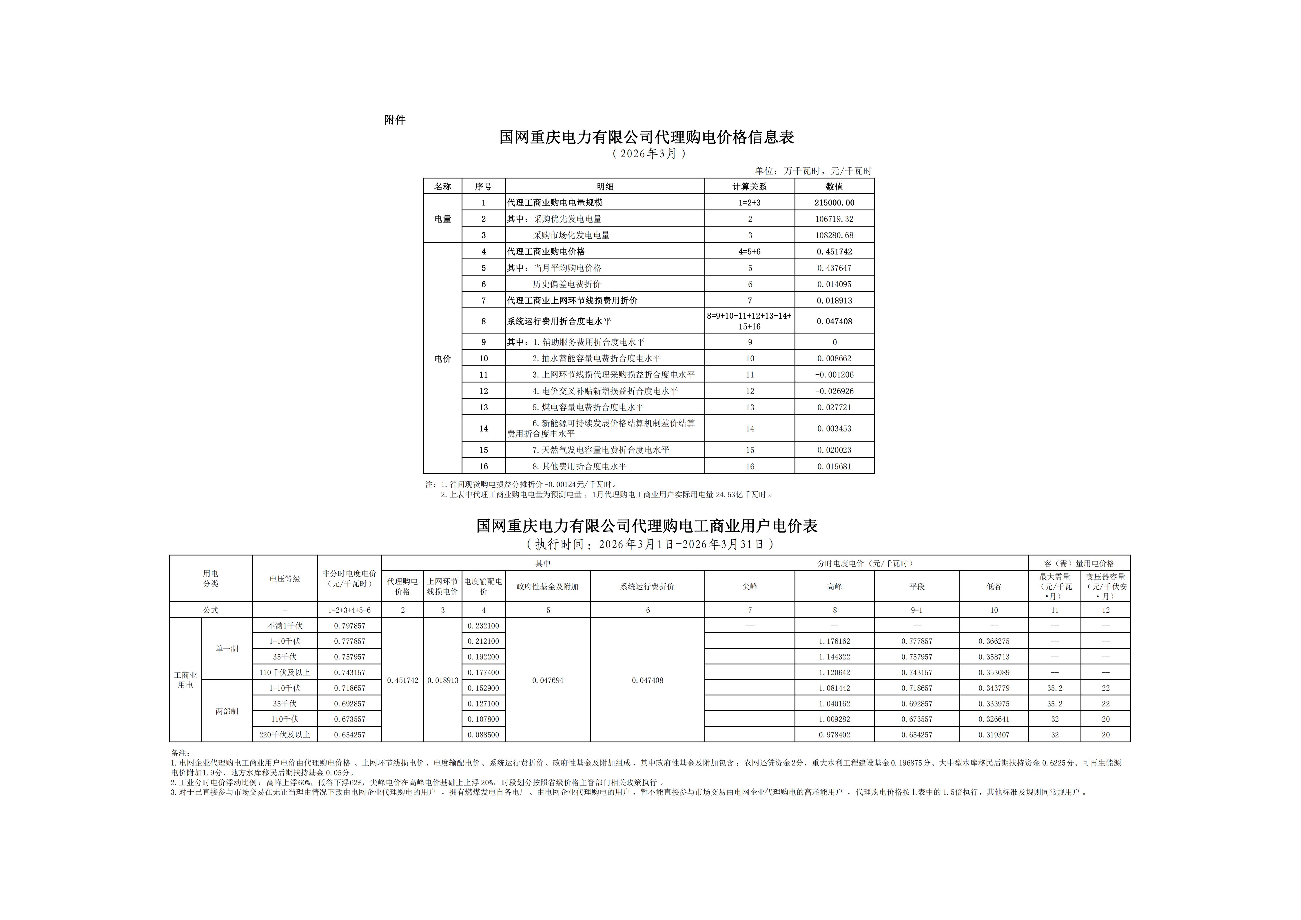 重慶3月工商業(yè)電價(jià)