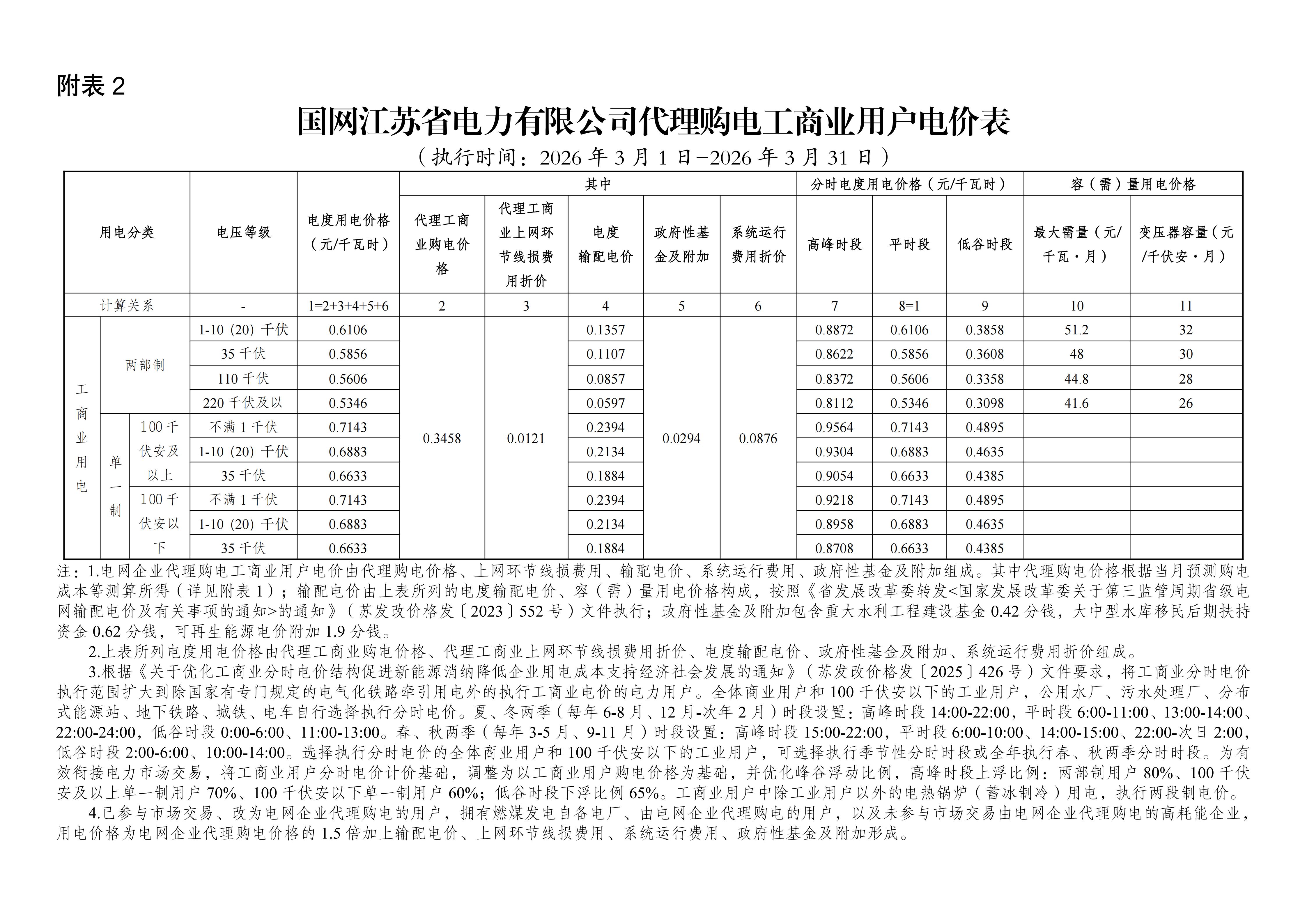 江蘇省3月工商業(yè)電價(jià)