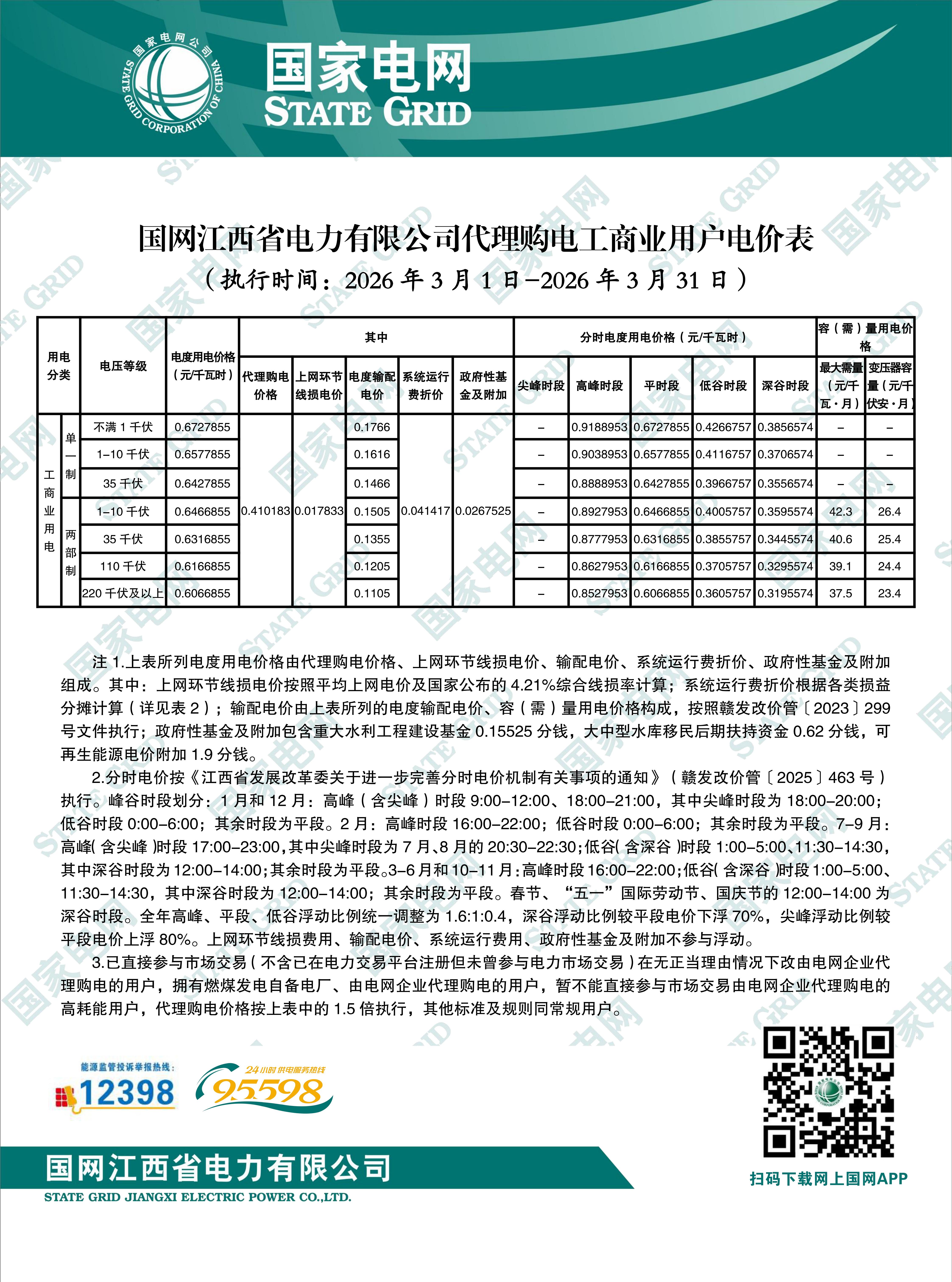 江西省3月工商業(yè)電價(jià)