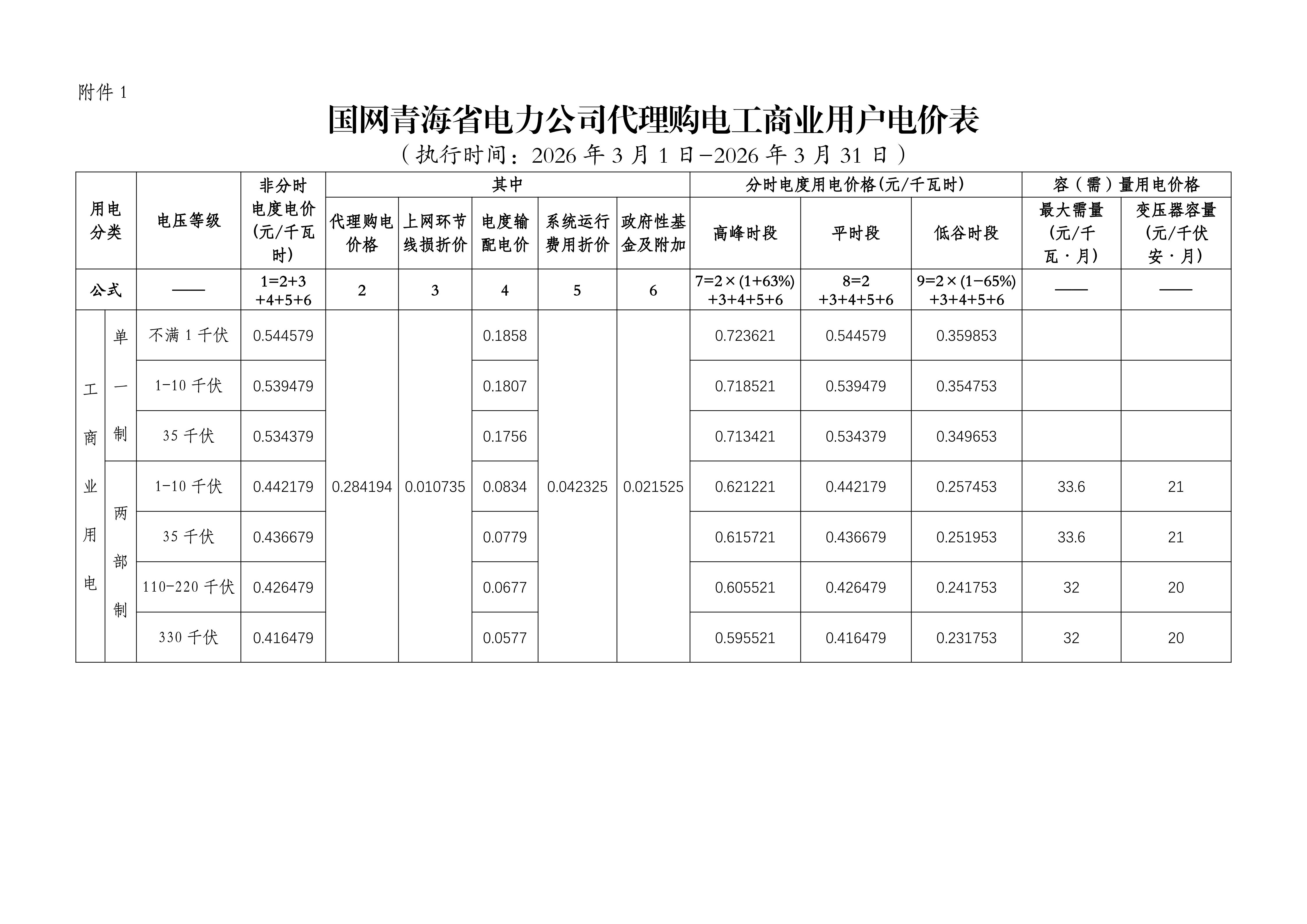 青海省3月工商業(yè)電價(jià)