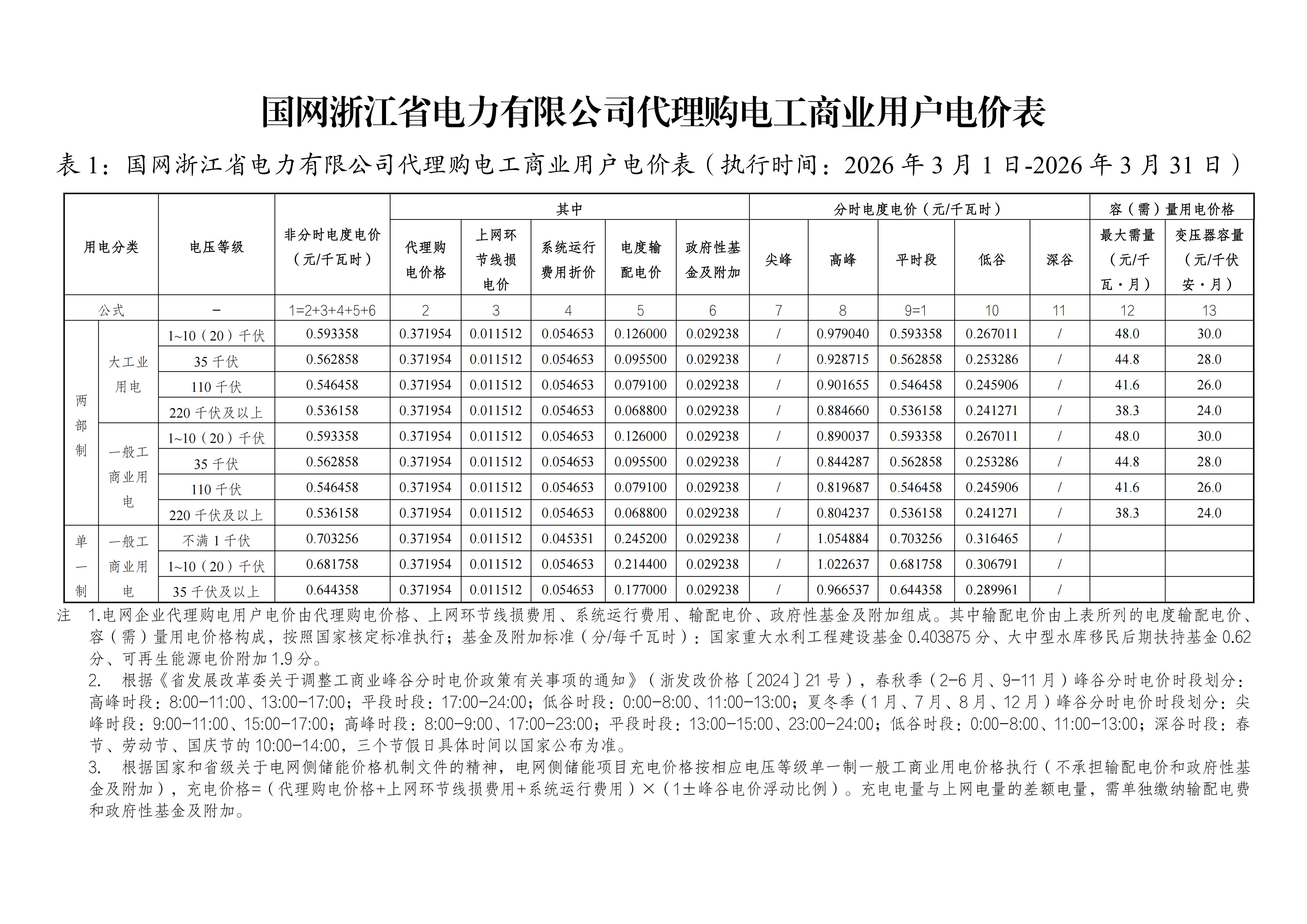 浙江省3月工商業(yè)電價(jià)