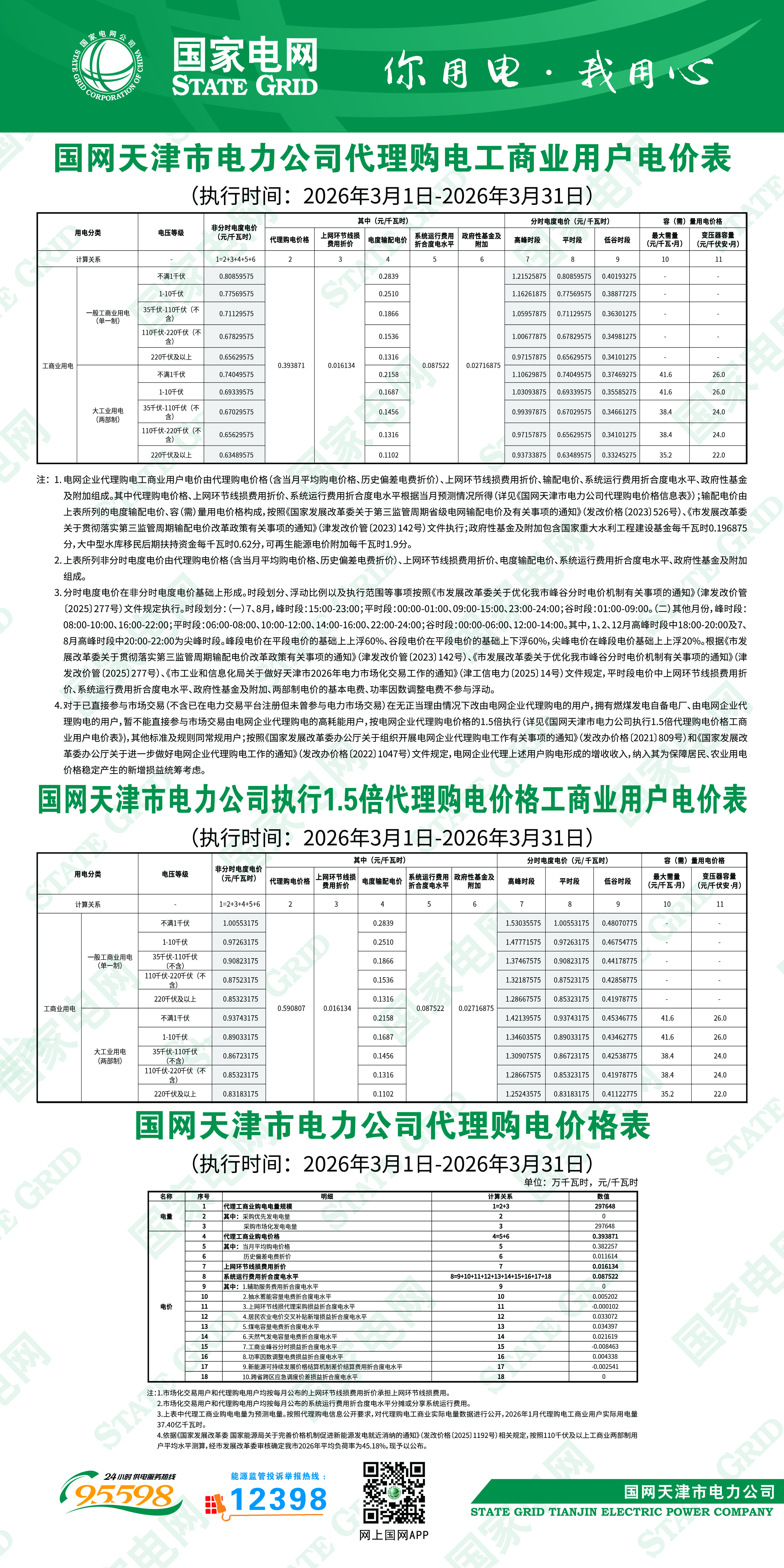 天津3月工商業(yè)電價(jià)
