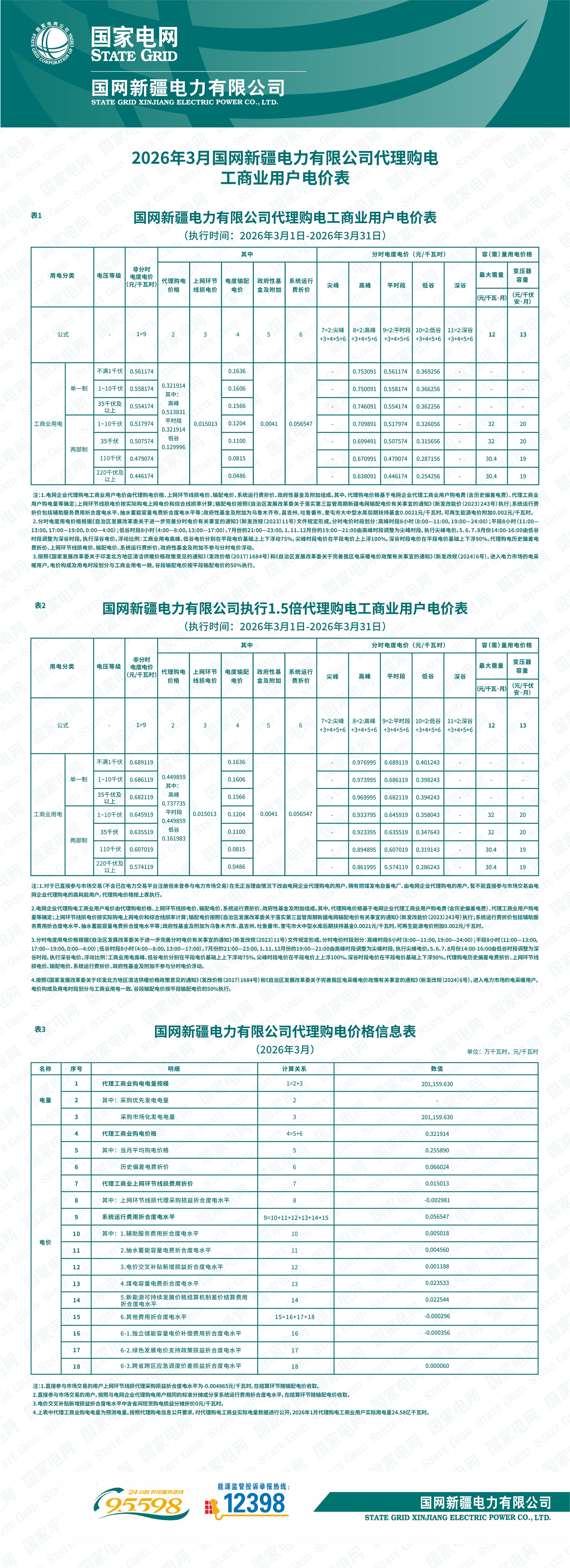 新疆3月工商業(yè)電價(jià)