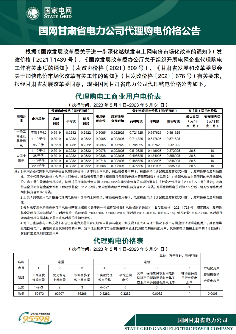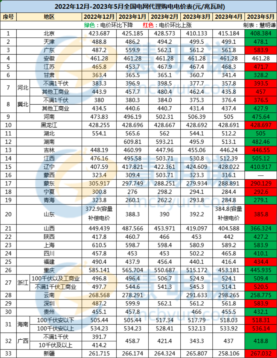 近日,國(guó)網(wǎng)、南網(wǎng)陸續(xù)發(fā)布了5月代理購(gòu)電價(jià)格,北京、天津、甘肅、河北部分地區(qū)、河南、湖北、湖南、遼寧、山西、青海、廣西等大部分省市代理購(gòu)電價(jià)格出現(xiàn)下滑,廣東、江蘇、蒙東、寧夏、新疆幾個(gè)省份代理購(gòu)電價(jià)格上漲。