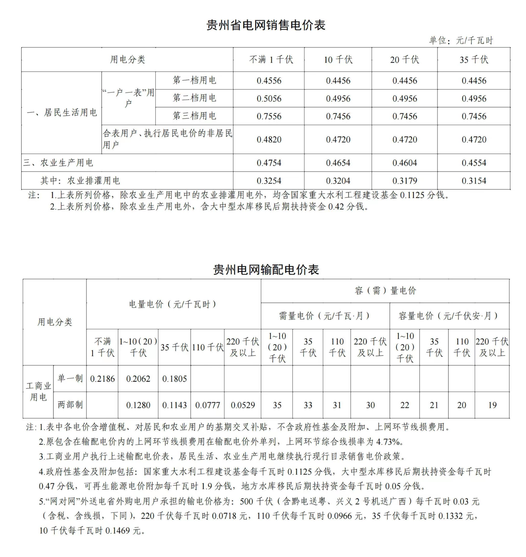 貴州省6月份代理購電工商業(yè)用戶電價(jià)表