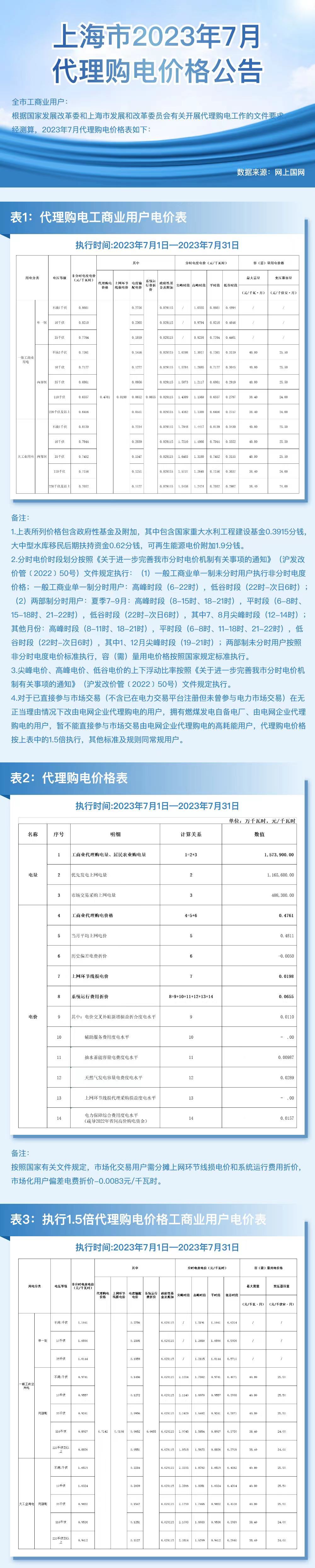 上海市7月份代理購電工商業(yè)用戶電價表