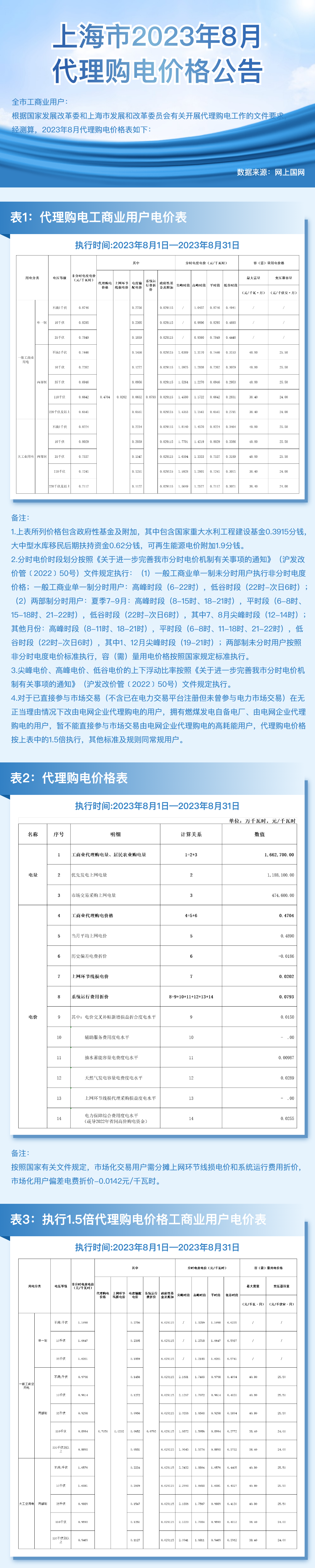 上海市8月份代理購電工商業(yè)用戶電價表