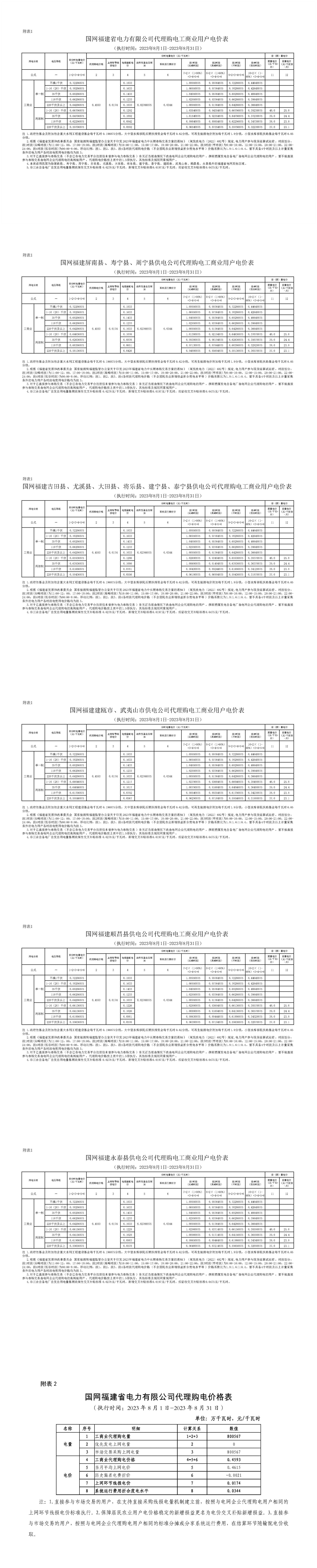 福建省8月份代理購電工商業(yè)用戶電價(jià)表