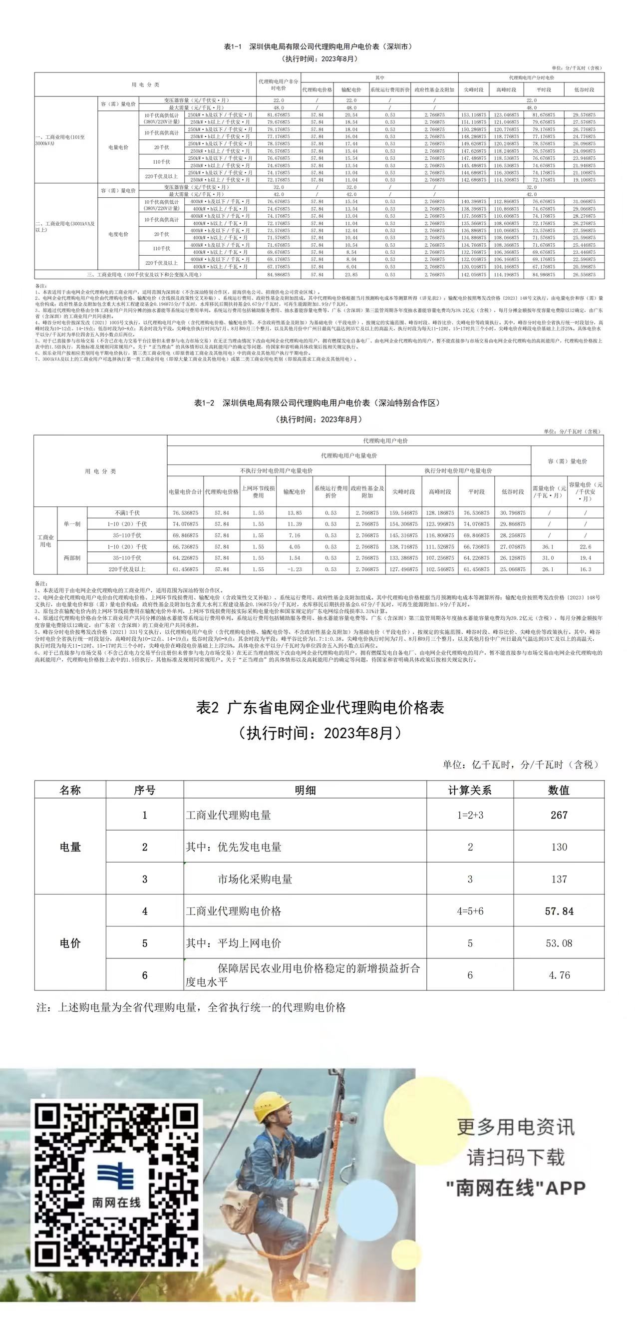 深圳市8月份代理購電工商業(yè)用戶電價表
