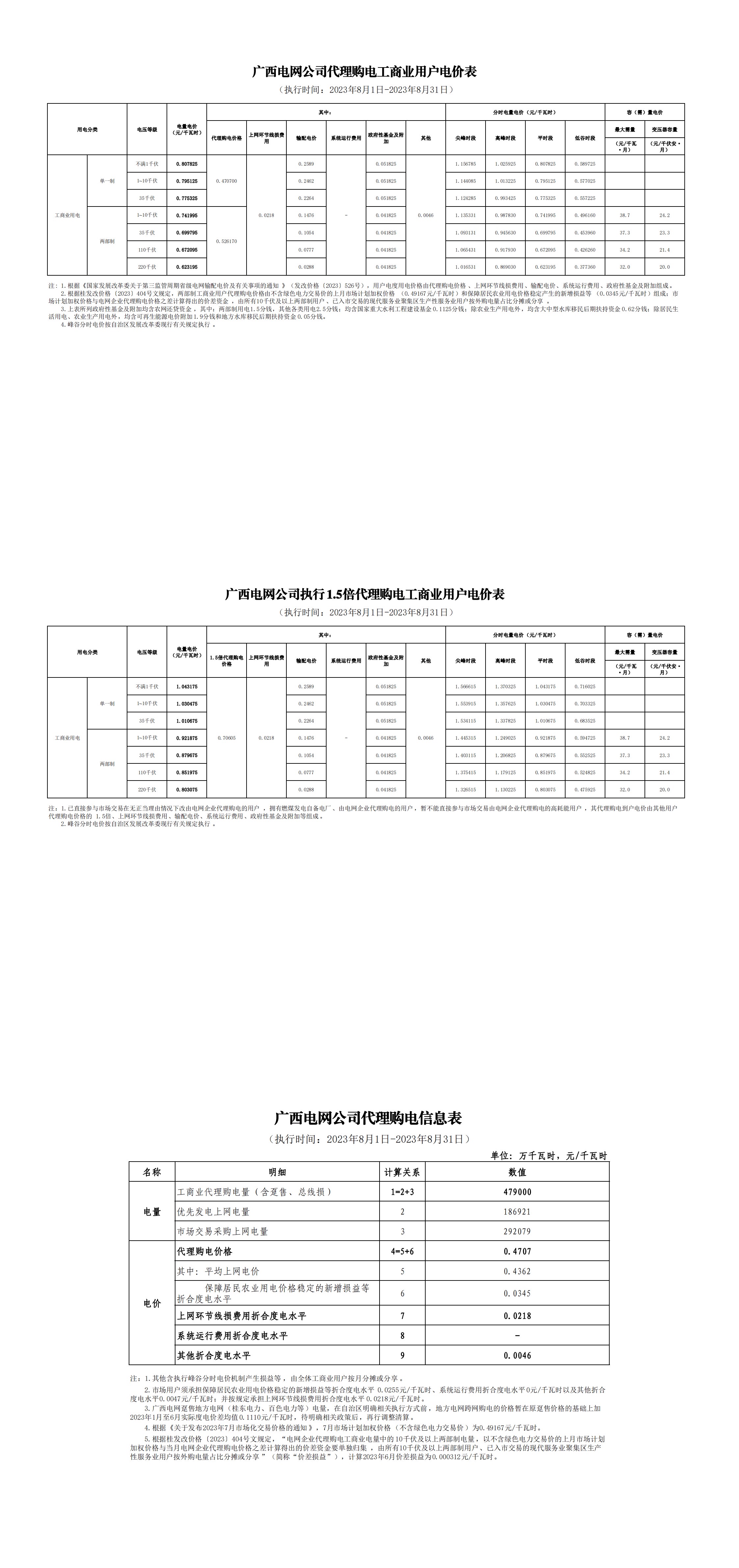 廣西省8月份代理購電工商業(yè)用戶電價表