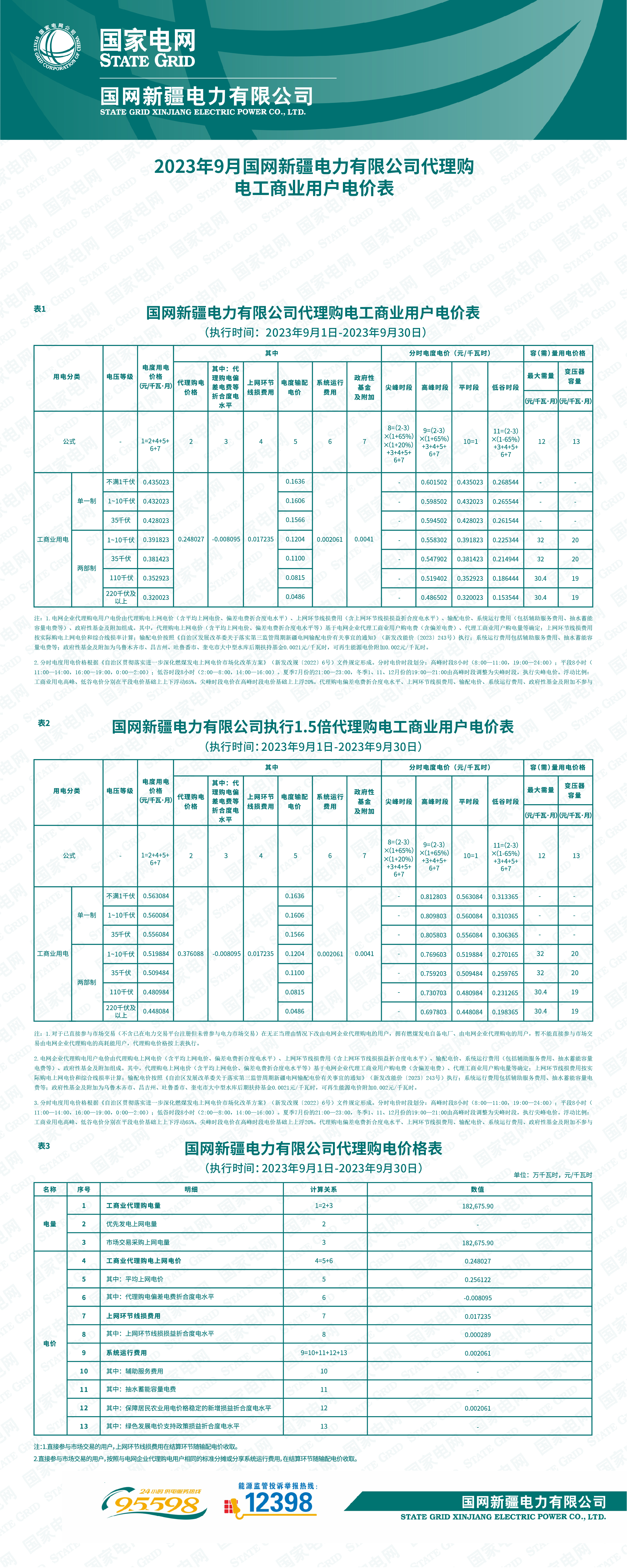 新疆9月份代理購(gòu)電工商業(yè)用戶電價(jià)表