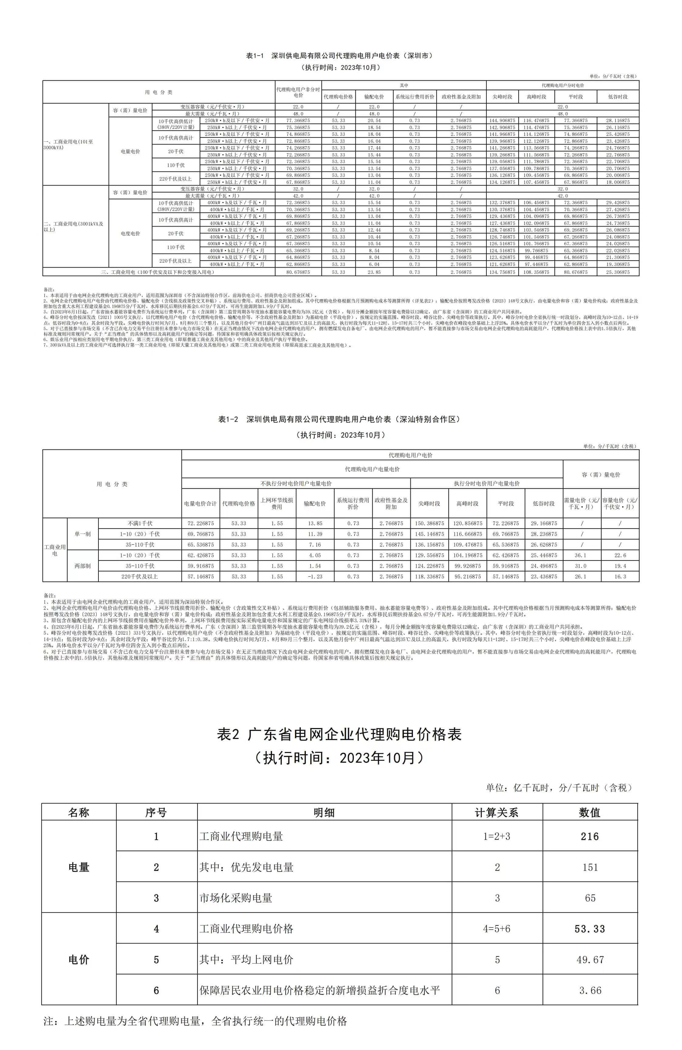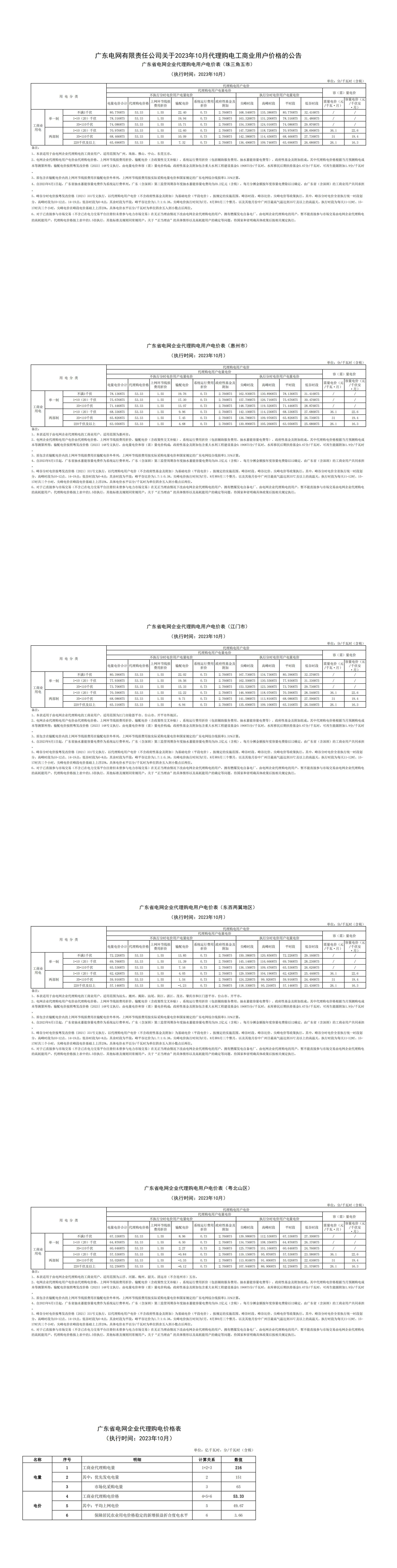 廣東省10月份代理購(gòu)電工商業(yè)用戶電價(jià)表
