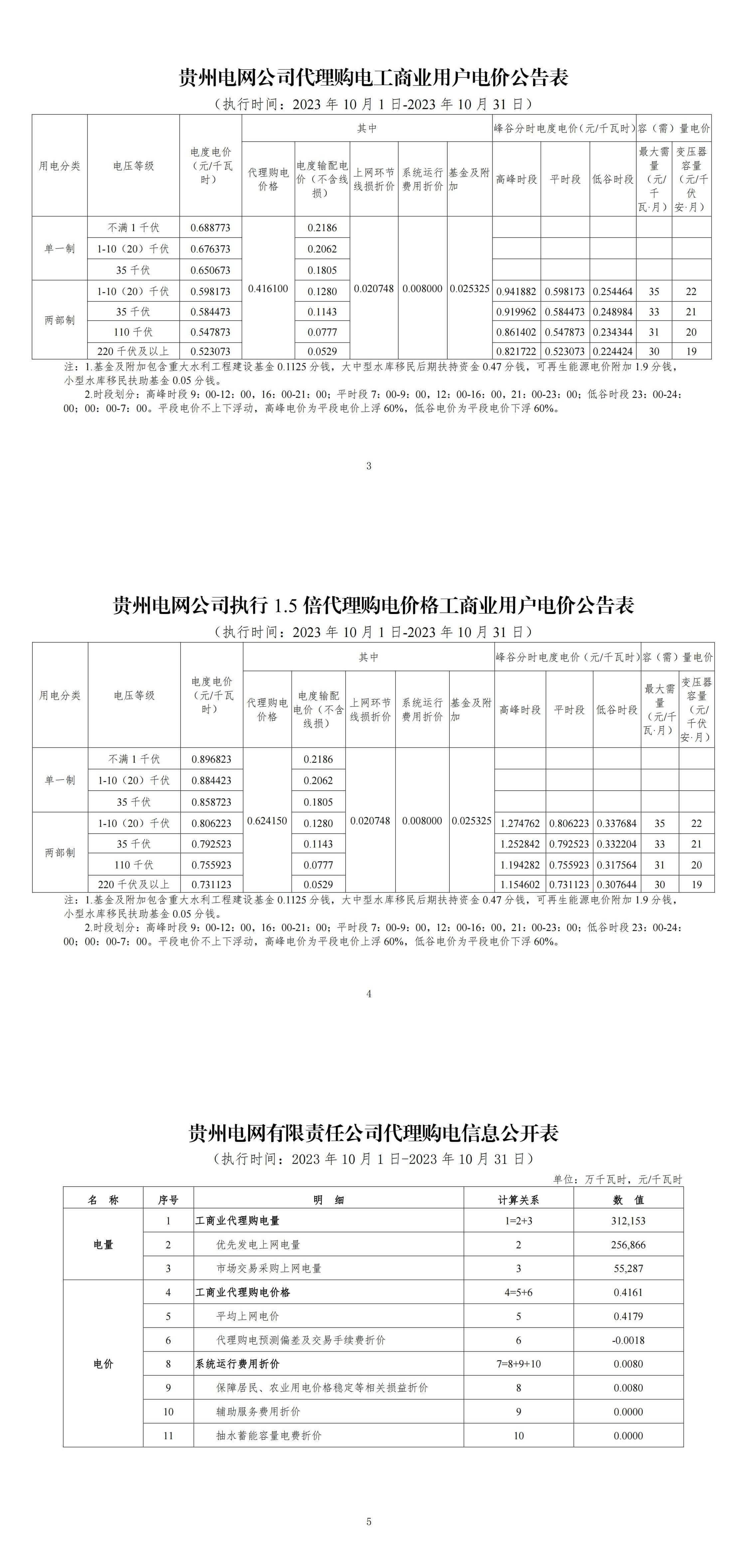 貴州省10月份代理購(gòu)電工商業(yè)用戶電價(jià)表