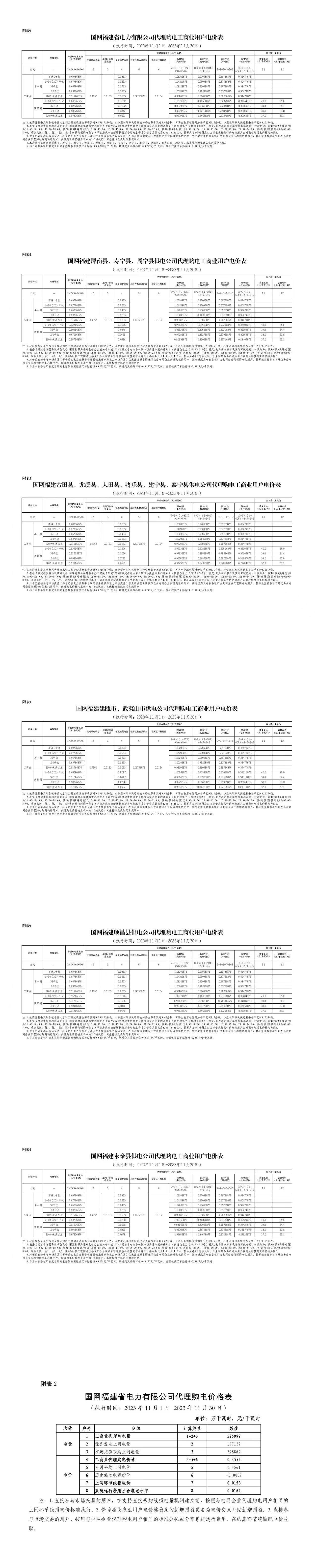 福建省11月份代理購(gòu)電工商業(yè)用戶電價(jià)表