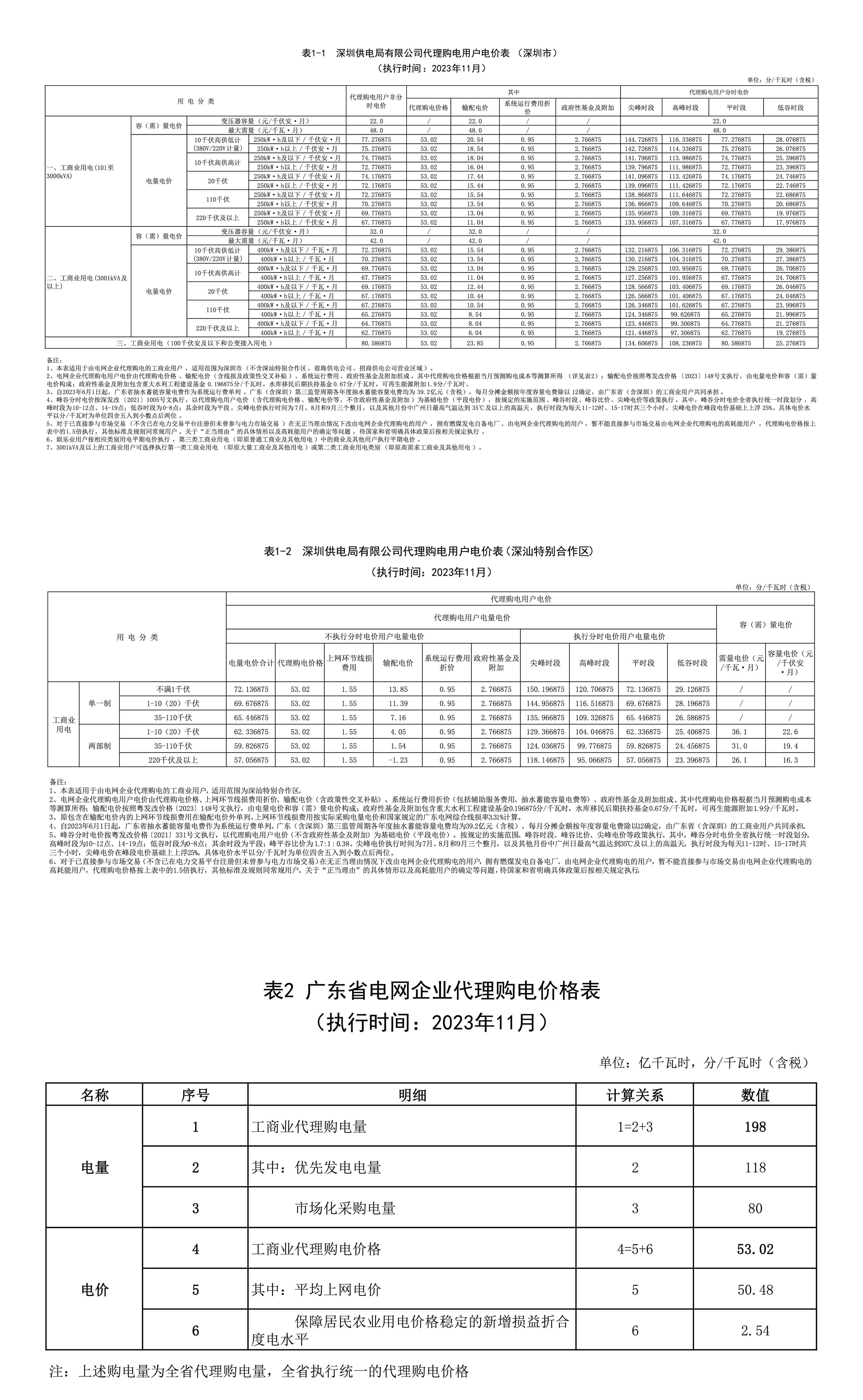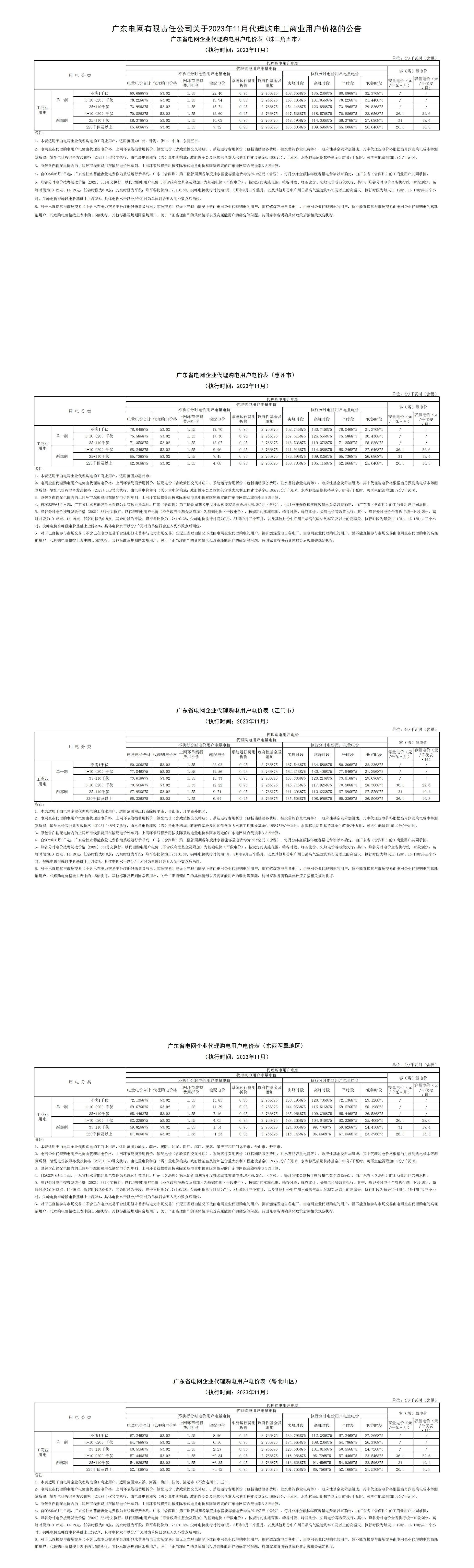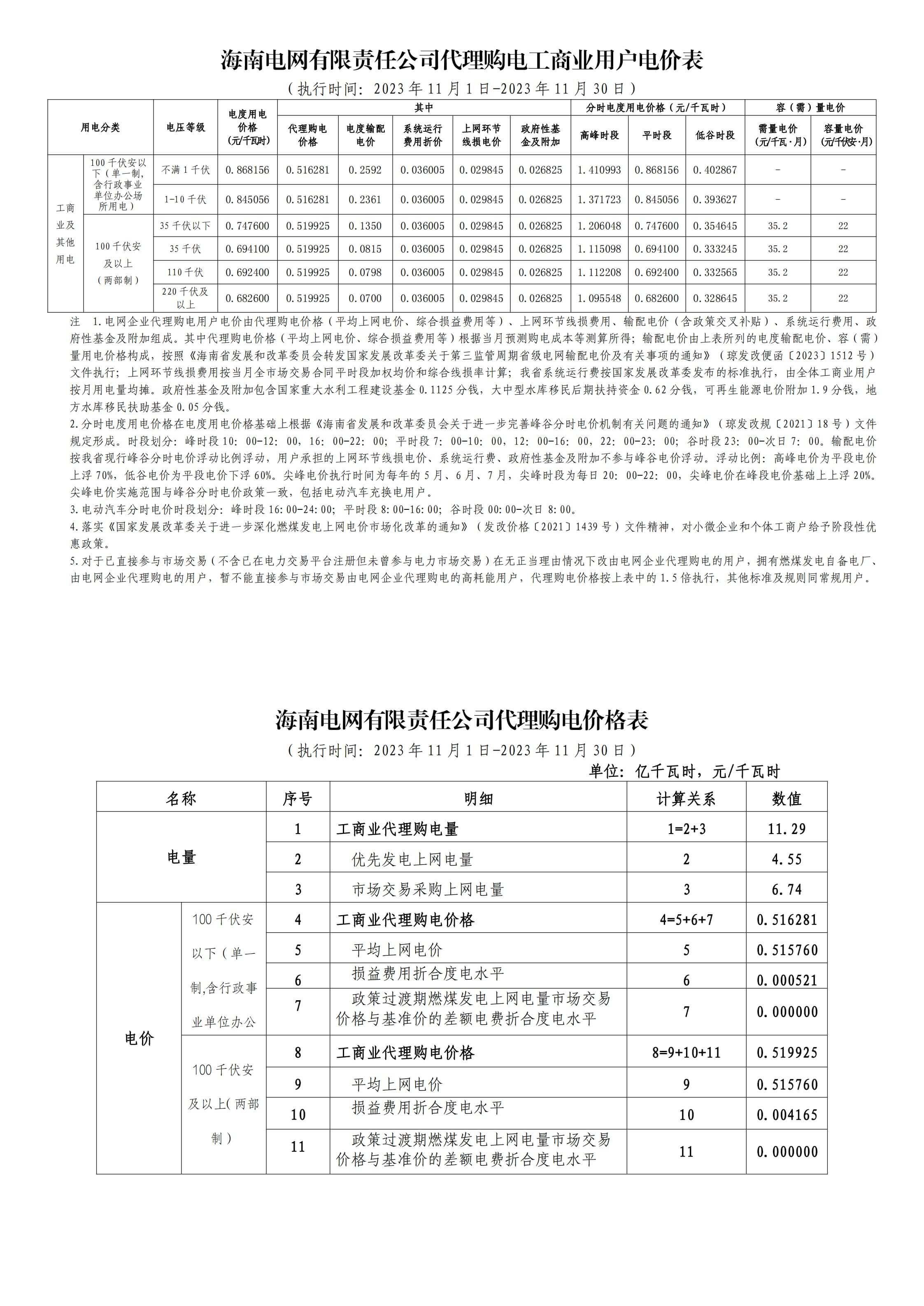 廣東省11月份代理購電工商業(yè)用戶電價表