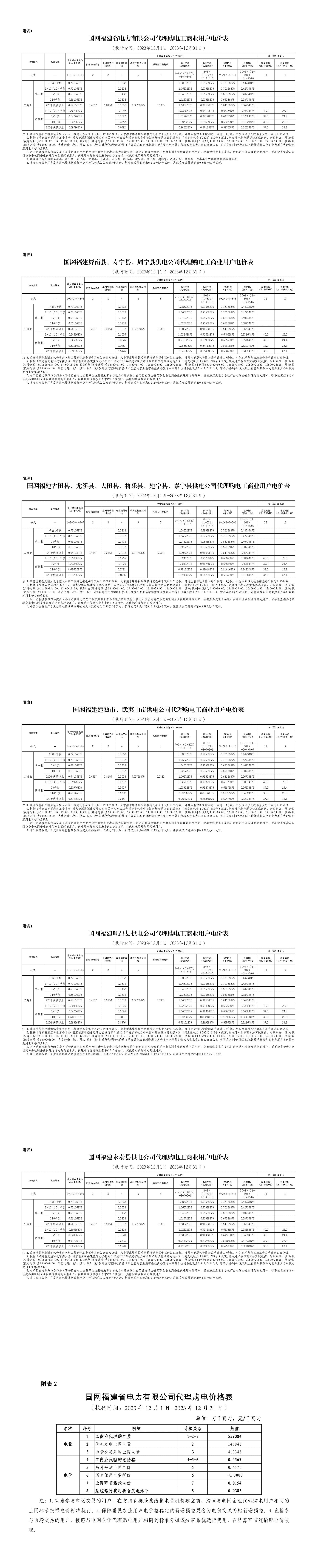 福建省12月份代理購(gòu)電工商業(yè)用戶(hù)電價(jià)表