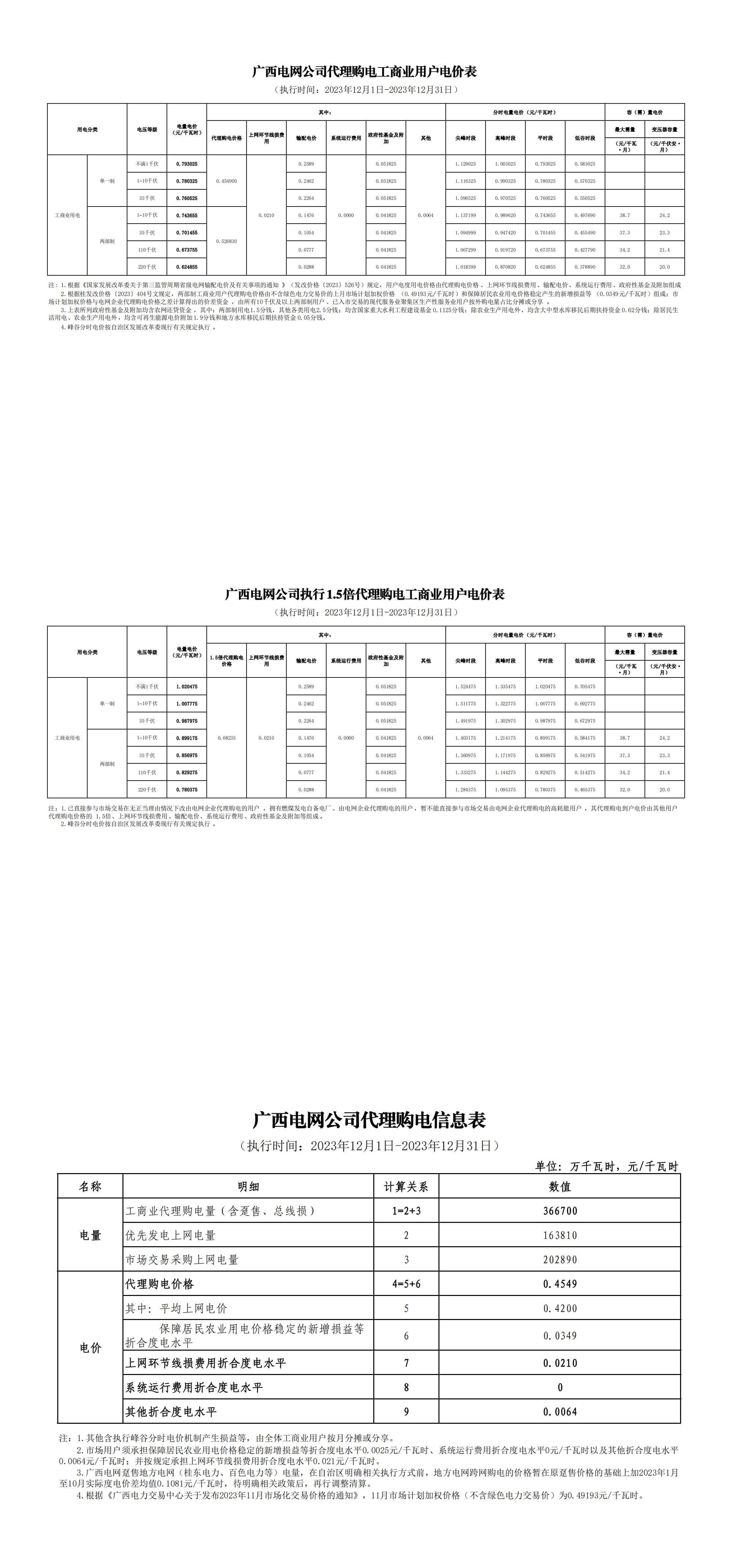 廣西省12月份代理購電工商業(yè)用戶電價(jià)表