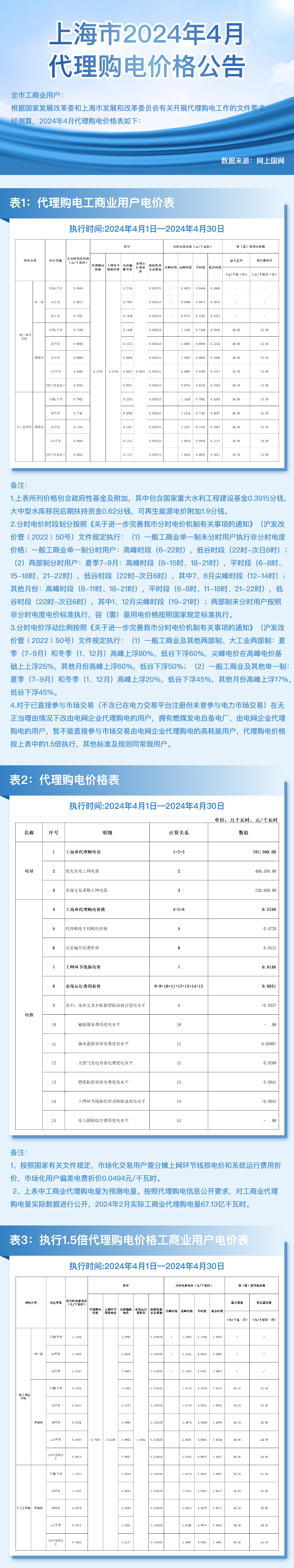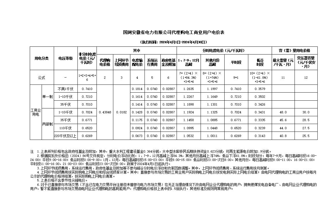 安徽省4月份代理購電工商業(yè)用戶電價表