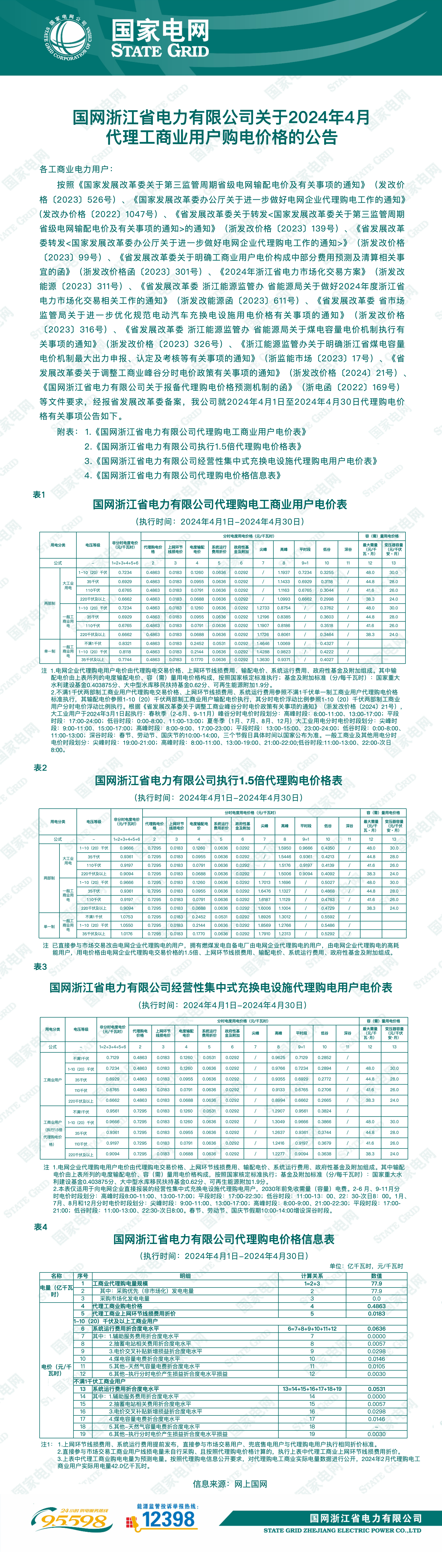 浙江省4月份代理購電工商業(yè)用戶電價表