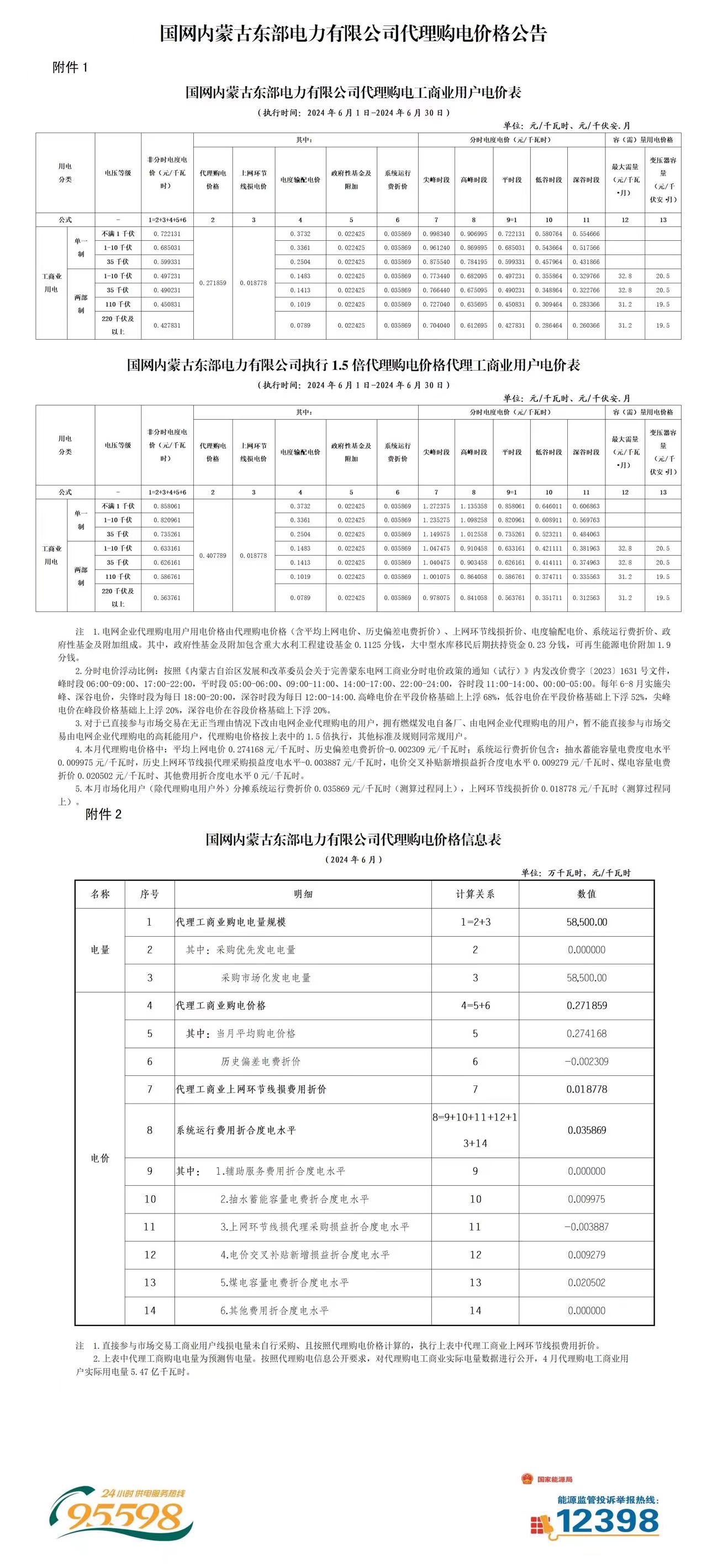 內(nèi)蒙古(蒙東)6月份代理購電工商業(yè)用戶電價表