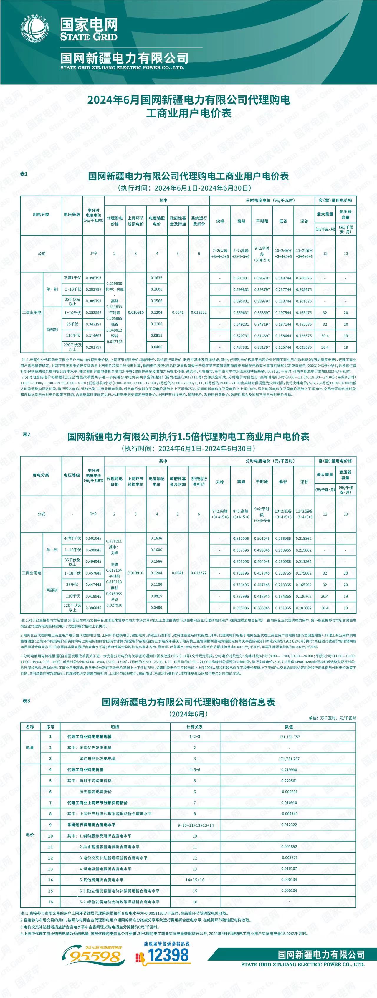 新疆6月份代理購電工商業(yè)用戶電價表
