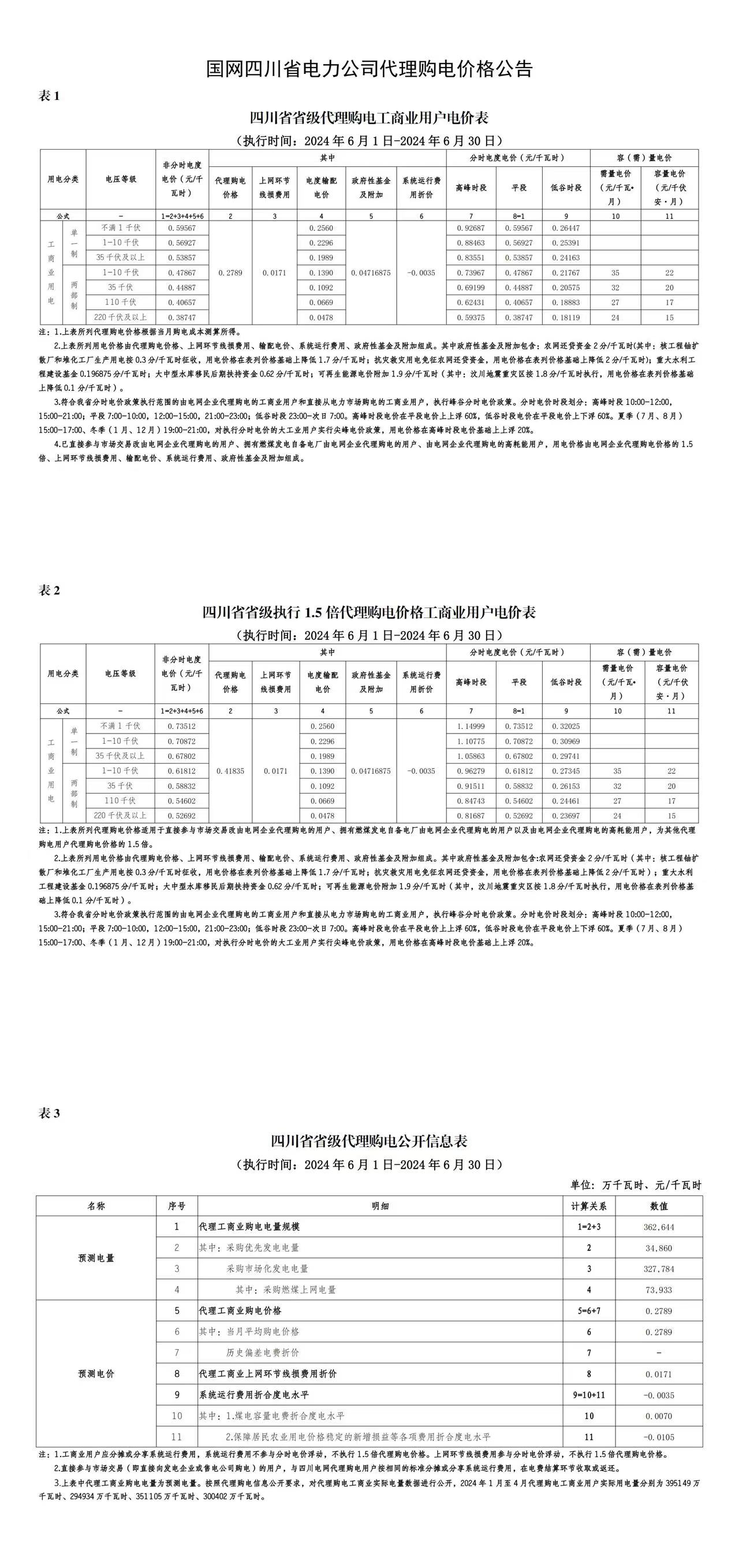 2024年6月份各省工商業(yè)電價(湖南、江西、福建、重慶、四川)