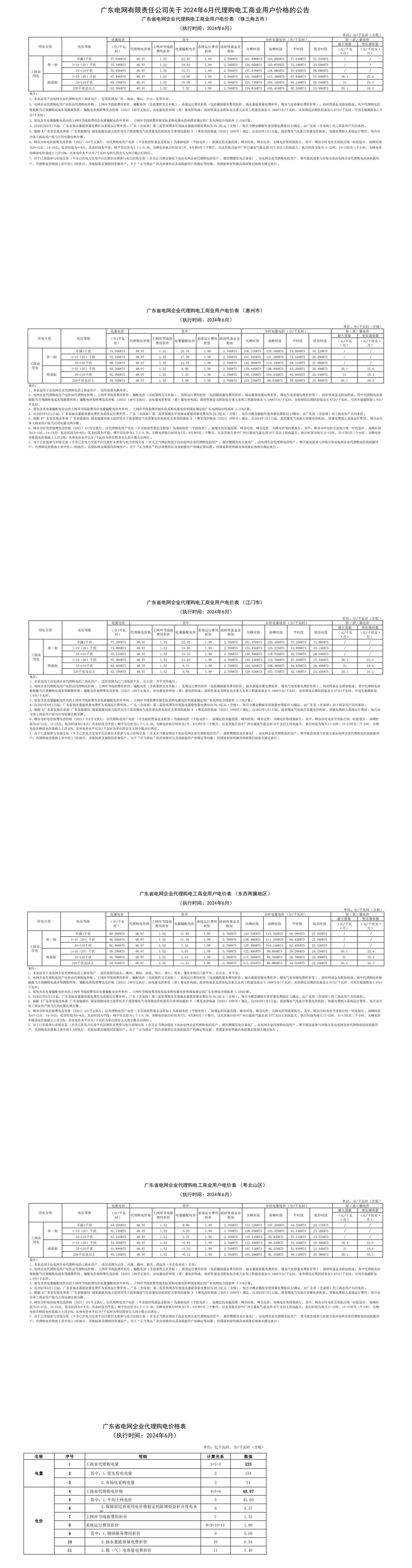 廣東省6月份代理購電工商業(yè)用戶電價(jià)表