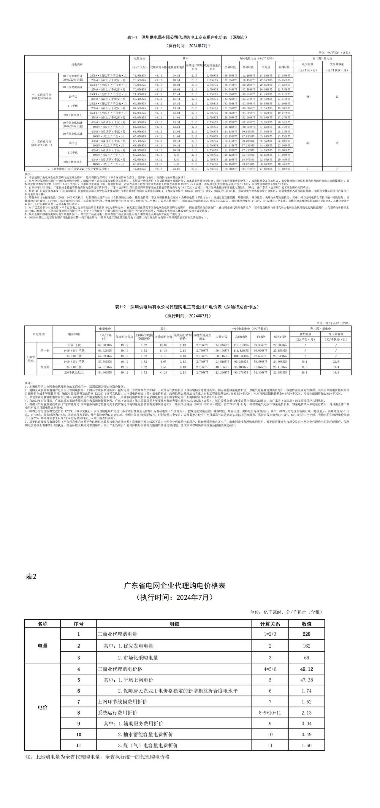 深圳市7月份代理購(gòu)電工商業(yè)用戶電價(jià)表