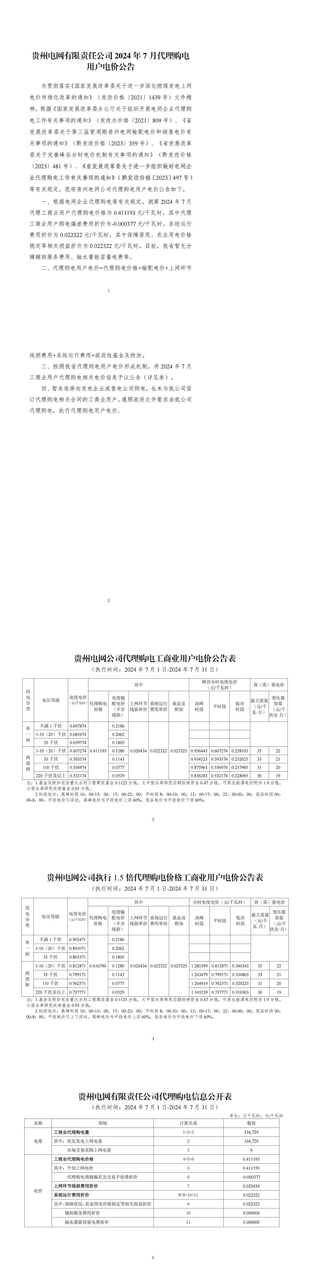 貴州省7月份代理購(gòu)電工商業(yè)用戶電價(jià)表