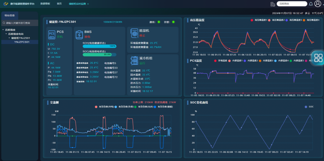 慧明謙的EMS系統(tǒng)支持并網(wǎng)、離網(wǎng)以及并離網(wǎng)切換等多種運(yùn)行模式。這種多模式運(yùn)行能力確保了儲能電站在不同工況下都能保持穩(wěn)定運(yùn)行,即使在電網(wǎng)故障或維護(hù)期間,也能無縫切換到離網(wǎng)模式,繼續(xù)為負(fù)載提供電力。