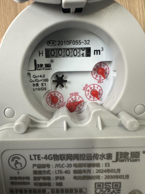 水表銘牌上有產(chǎn)品型號(hào)、電磁環(huán)境等級(jí)、防護(hù)等級(jí)、制造時(shí)間、電池更換時(shí)間等。二維碼表號(hào)是水表唯一序列號(hào)。