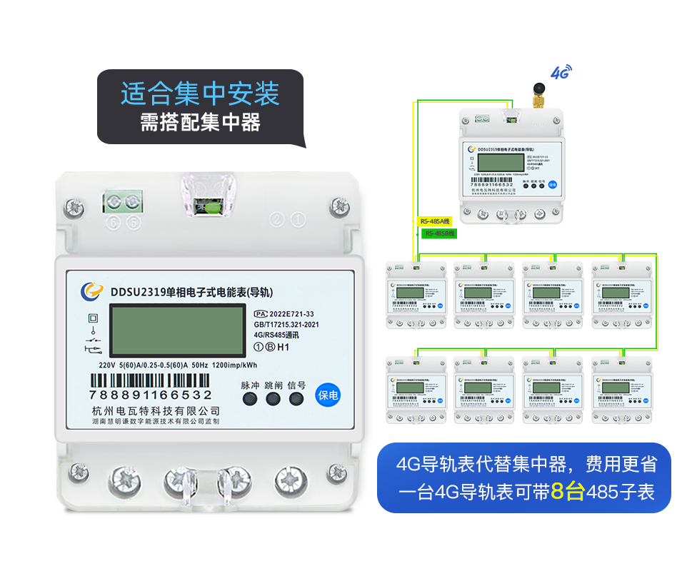 電瓦特DDSU2319單相4G通訊電子式導(dǎo)軌表