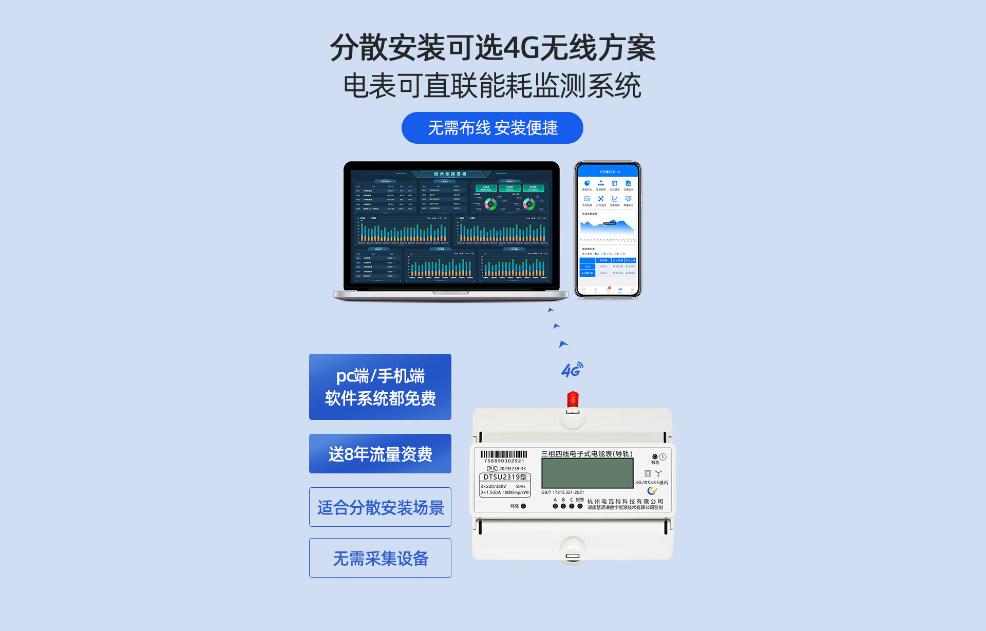 電瓦特DTZY2319-Z型4G通訊智能電能表